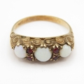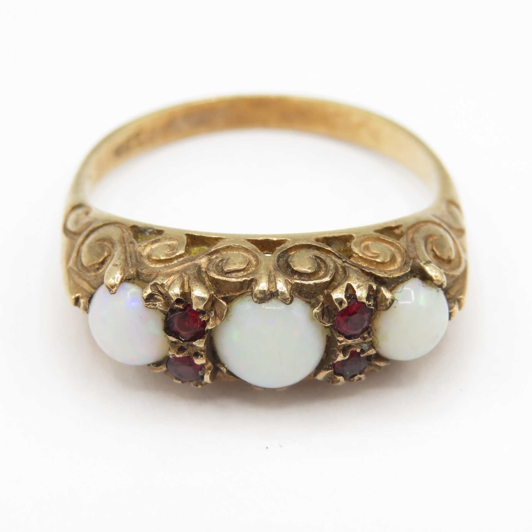 Vintage 9ct gold opal and garnet ring (3.1g) size O