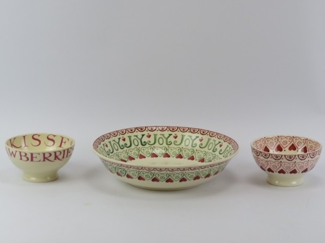 Three Emma Bridgewater hearts decorated ceramic wares. (3 items) 28.5 cm largest diameter.