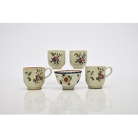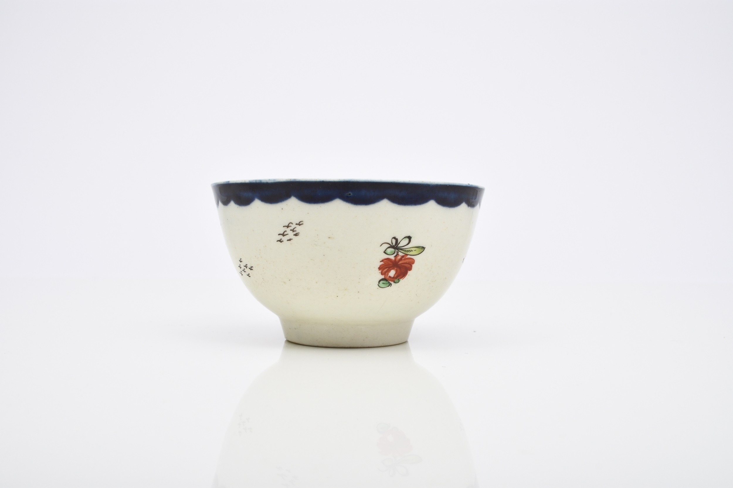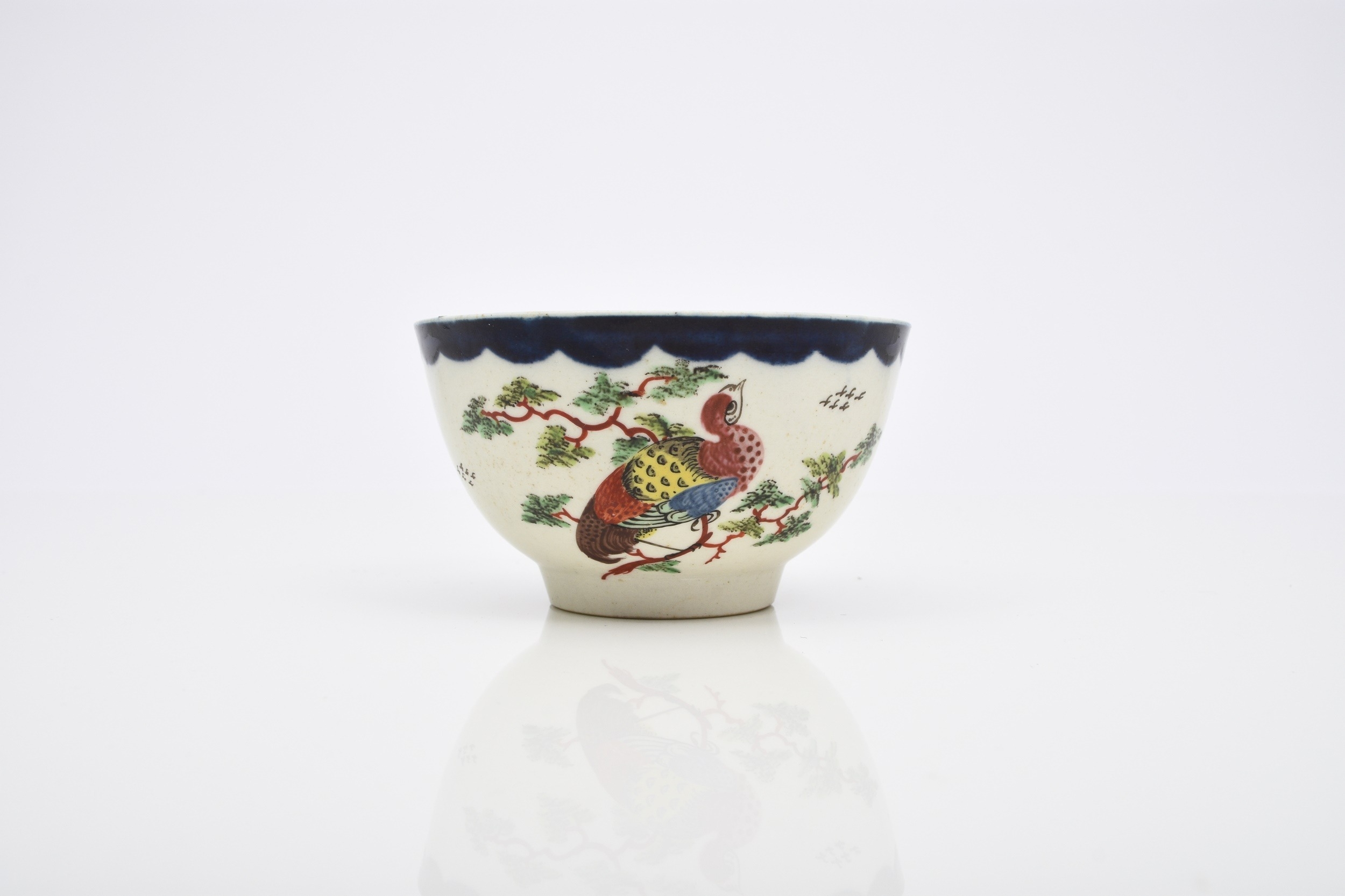 A Seth Pennington (Liverpool) 'Exotic Birds' tea bowl, circa 1780, painted in polychrome to the exterior and a red line and circle border to the interior and blue border to exterior, 8cm diameter Condition:Wear to the interior flower in the bowl but exterior decoration is good. One small glaze fault to the rim but no damages or repairs.