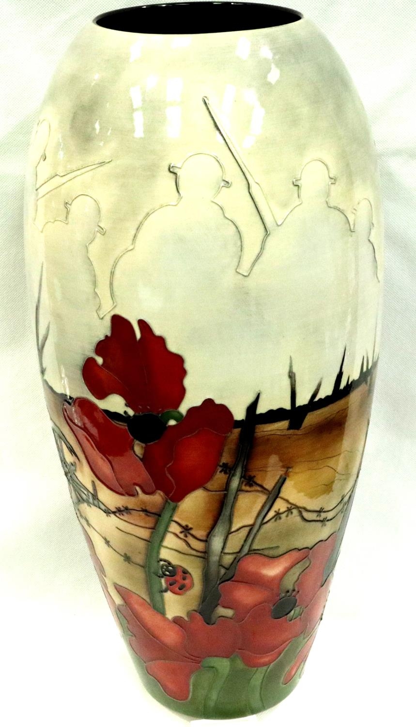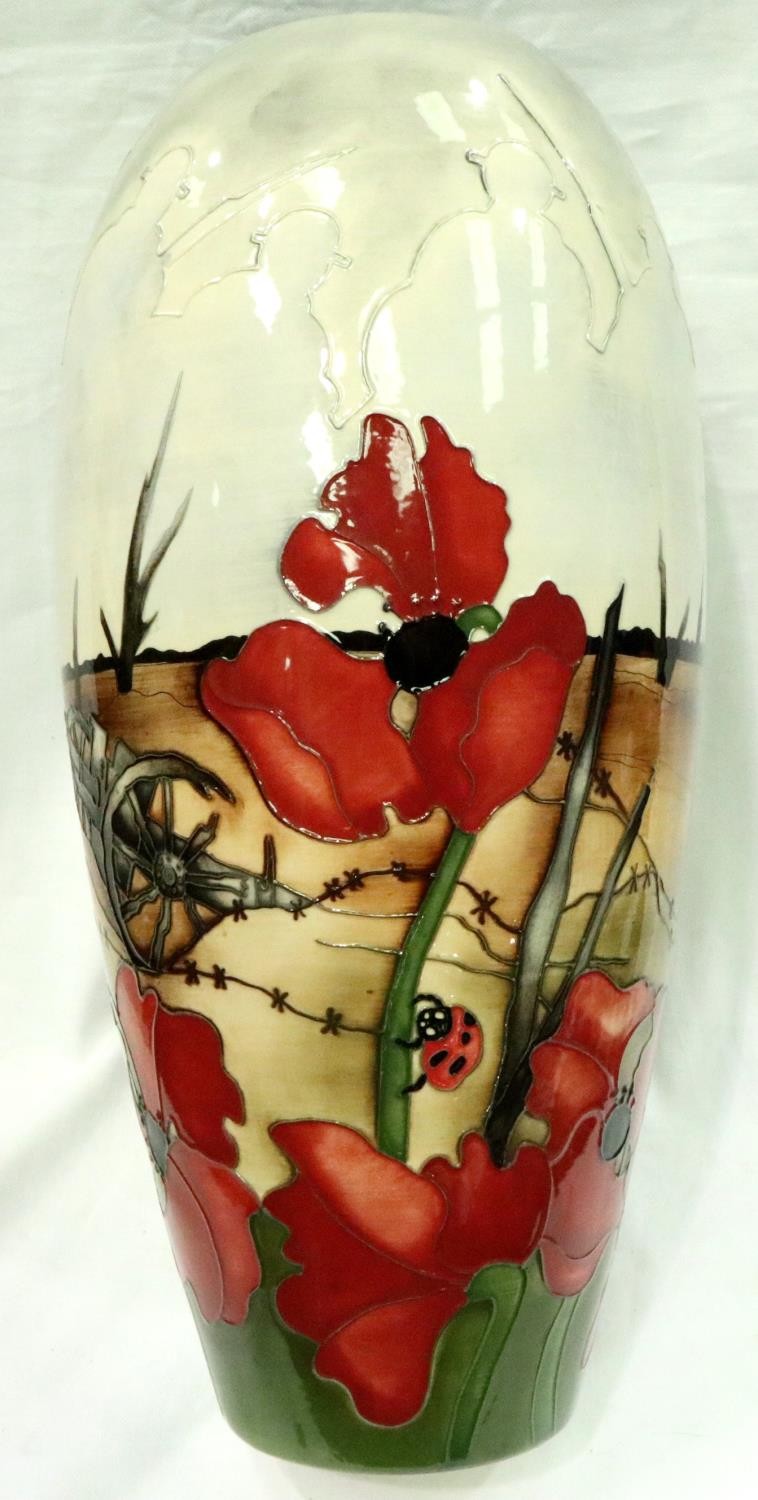 Moorcroft Prestige vase trial piece by Kerry Goodwin, Lest We Forget, numbered edition 40, H: 46 cm. No cracks, chips or visible restoration. P&P Group 3 (£25+VAT for the first lot and £5+VAT for subsequent lots)