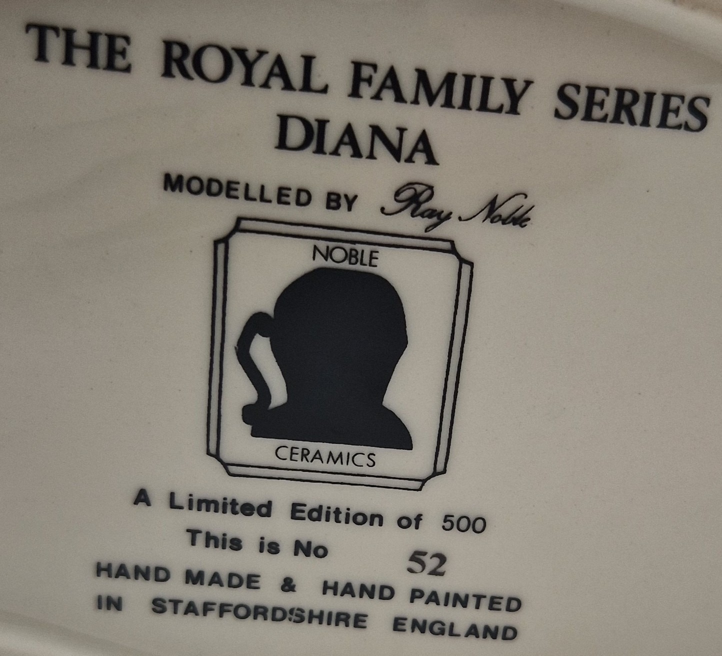 NOBLE CERAMICS (Staffordshire ,England) 20cm x 18cm CHARACTER JUG "DIANA" (Limited Edition 500 This One Being No 52) (Modelled By Top Ceramic Sculptor Mr Ray Noble) FOR THE ROYAL FAMILY COLLECTION