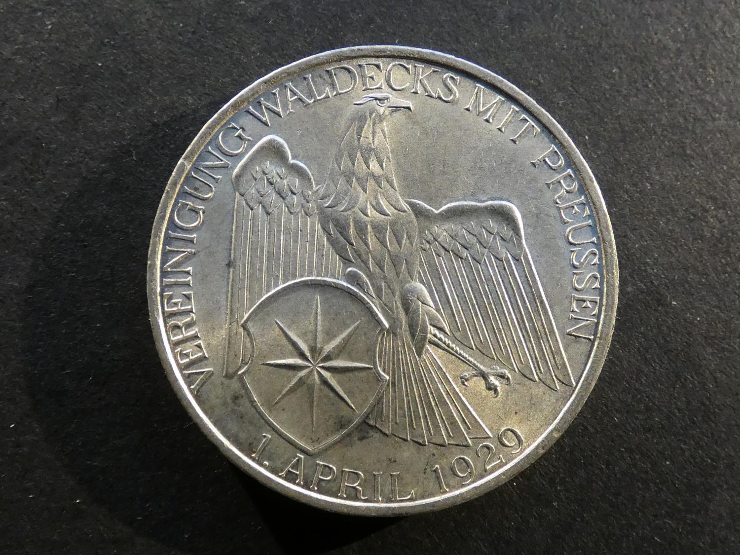 GERMANY. Weimar Republic (1919-1933). 3 Reichsmark, 1929A, Berlin mint, Waldeck-Prussia union, KM62, EF