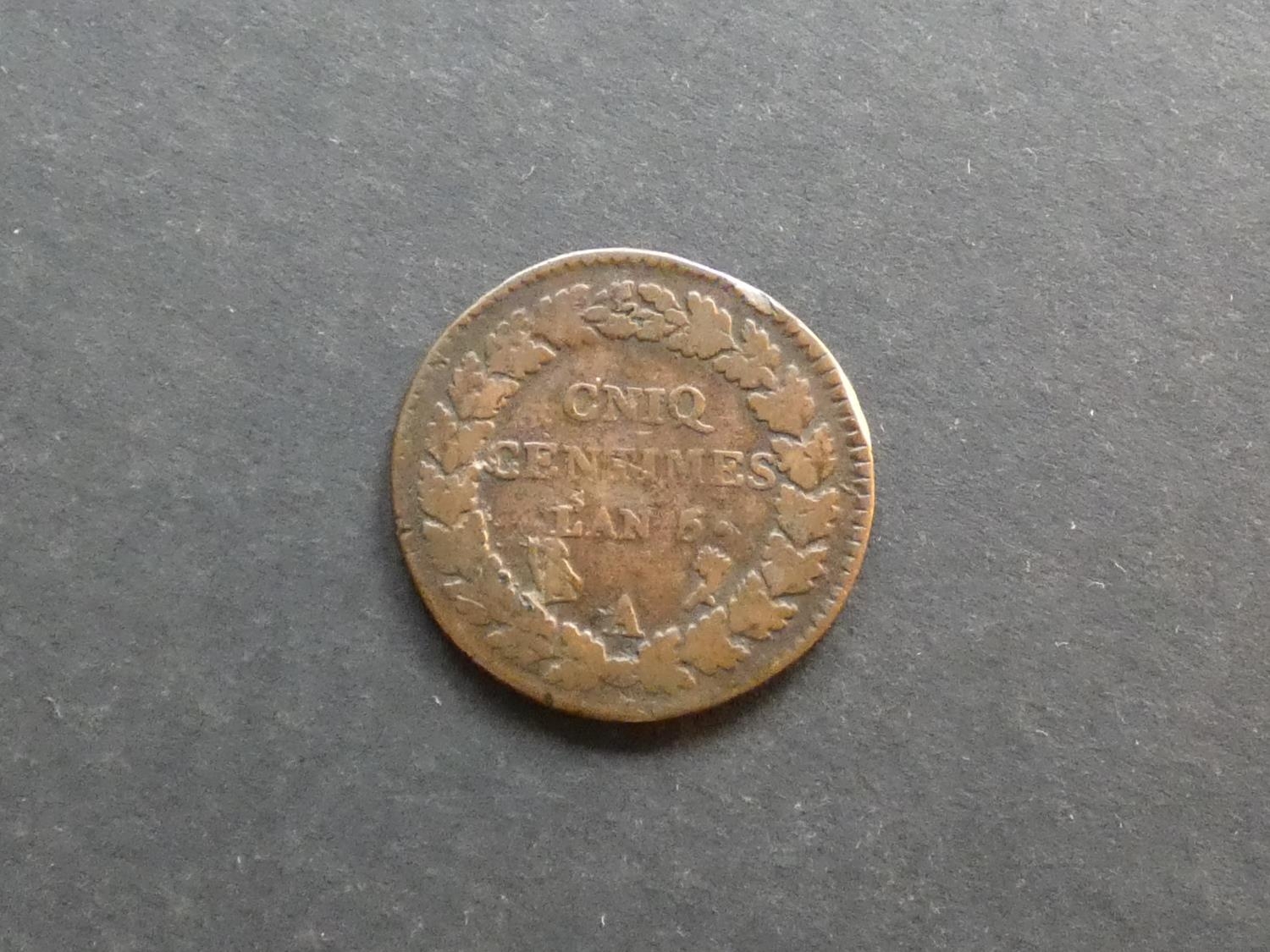 FRANCE. 5 Centimes, L’An5A, KM640.1, error; “CNIQ”, VG ek