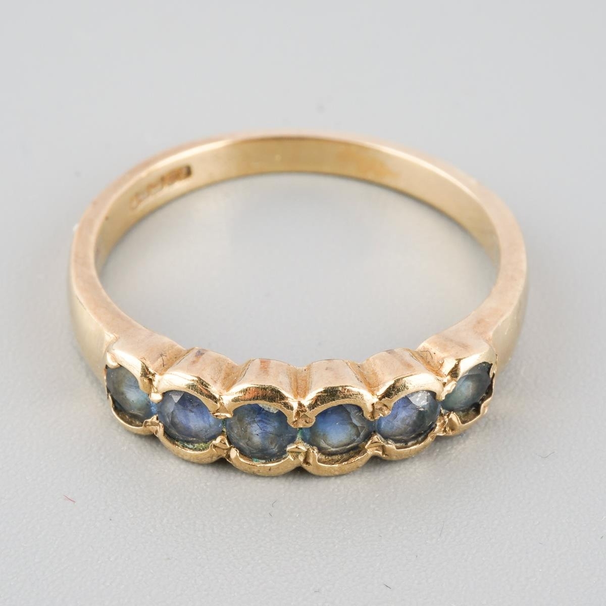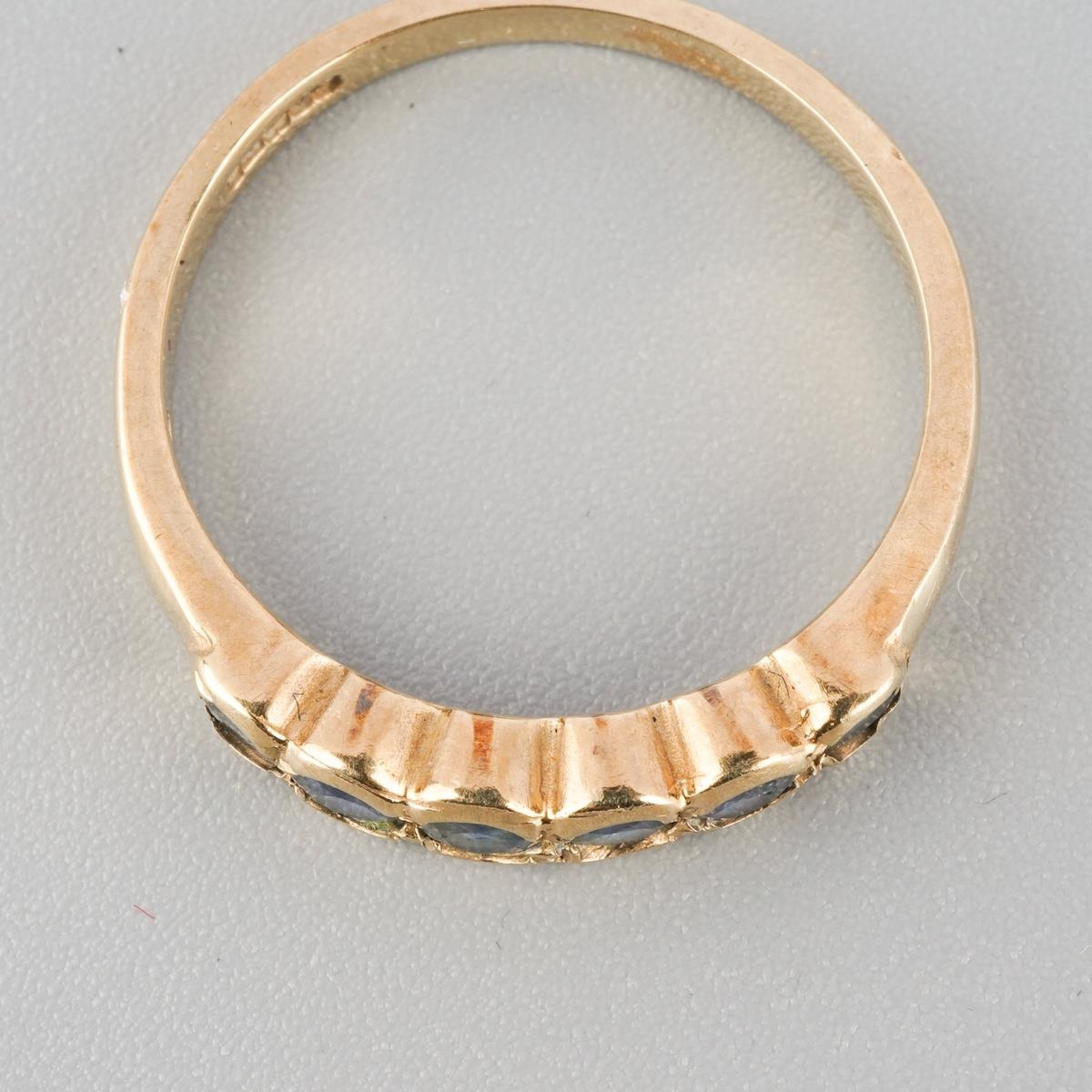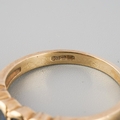 A 9ct gold sapphire ring. Hallmarked 9ct gold, apprxo ring size O, approx gross weight 2.6 grams.