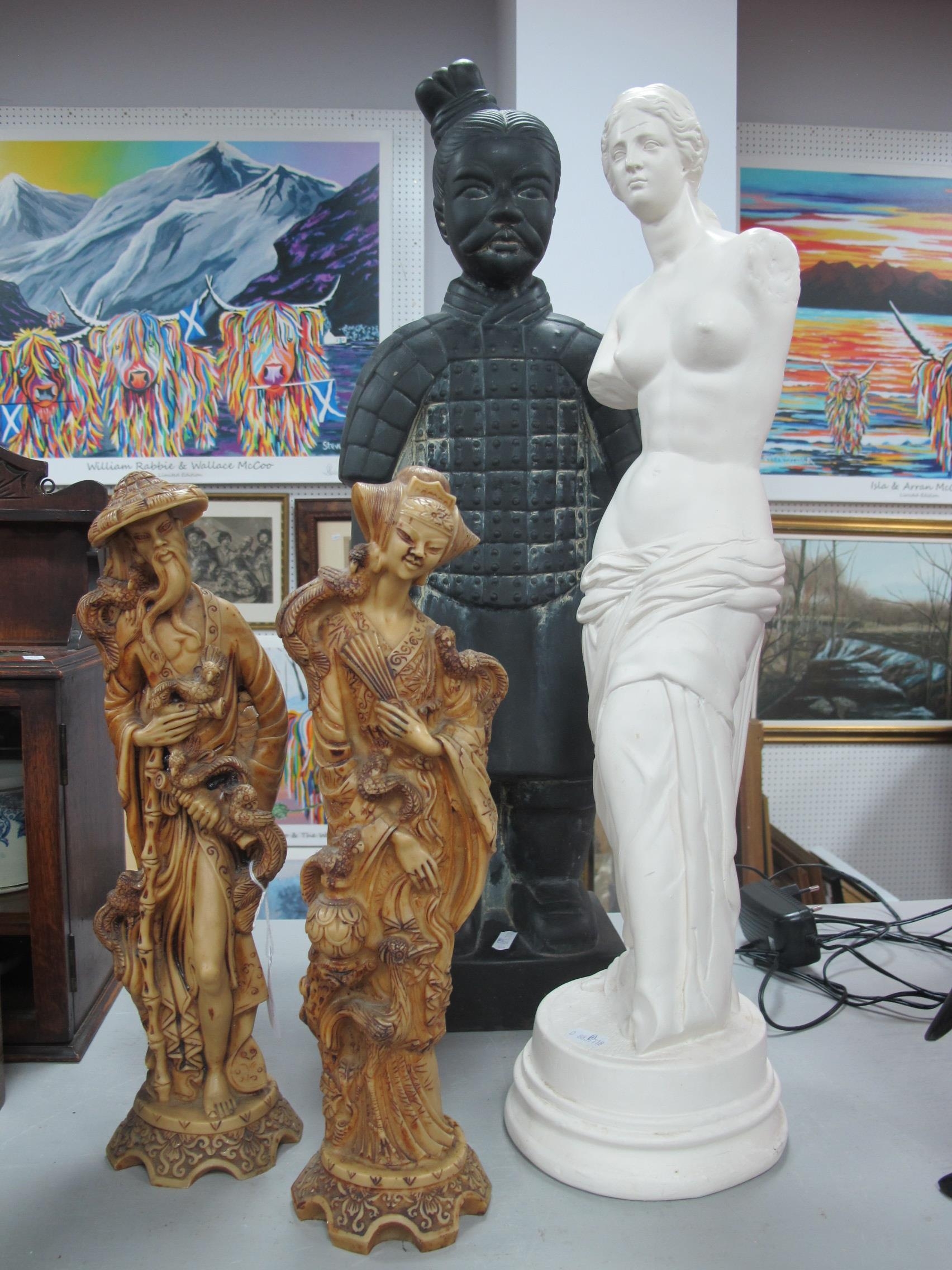 Pottery Chinese Warrior, 65cm high, plaster maiden resin figures (4).