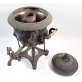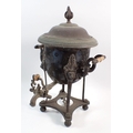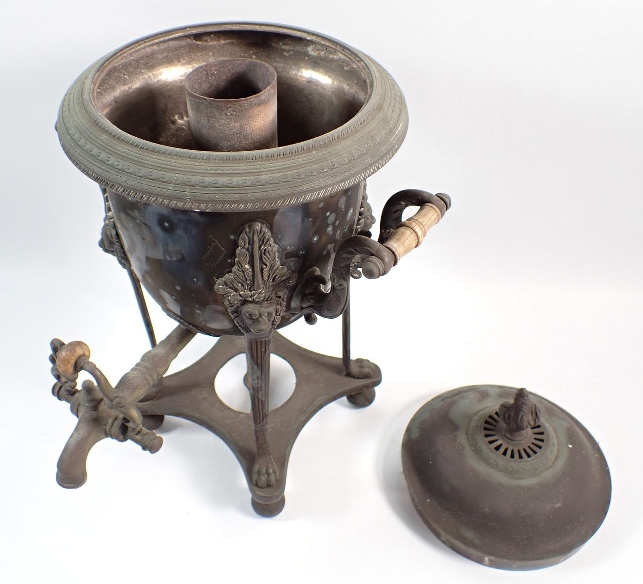 A silver plated samovar with lion mask decoration on paw feet, 36.5cm high