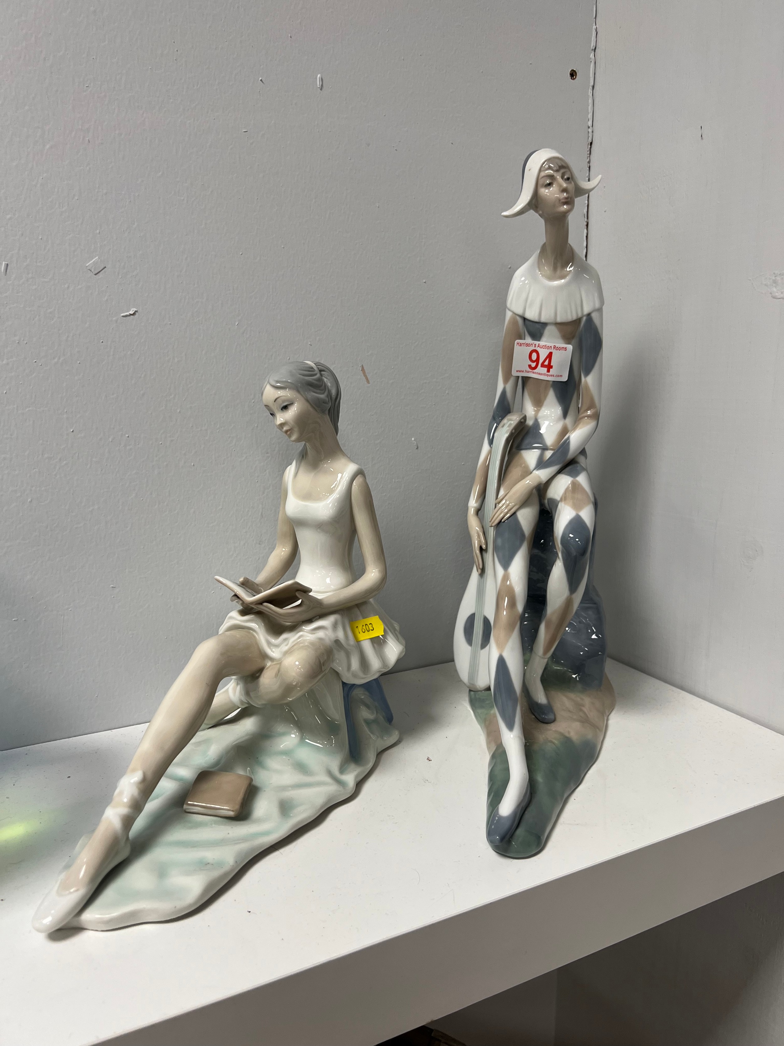 Large Nao by Lladro figure 'harlequin' + 1 other spanish figure