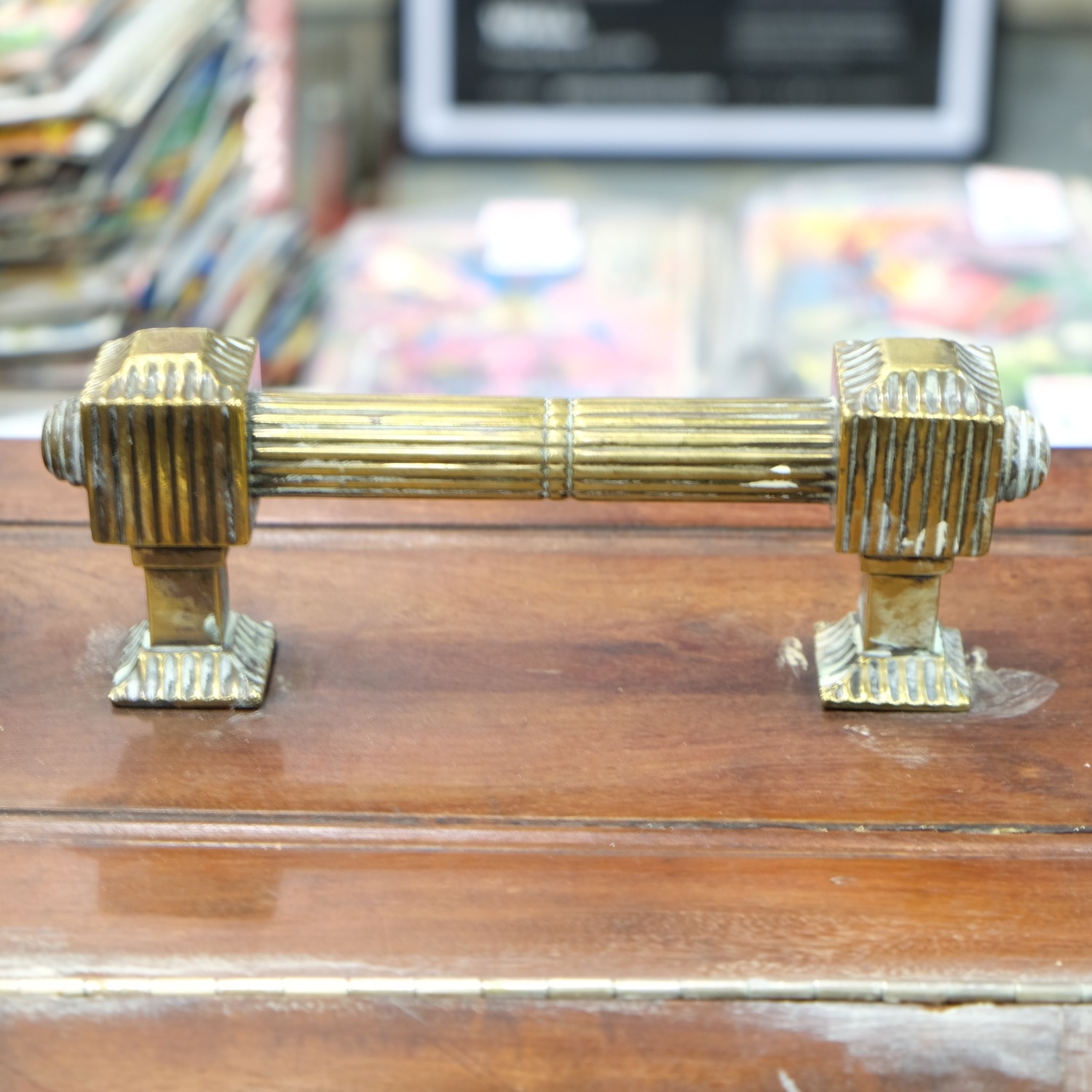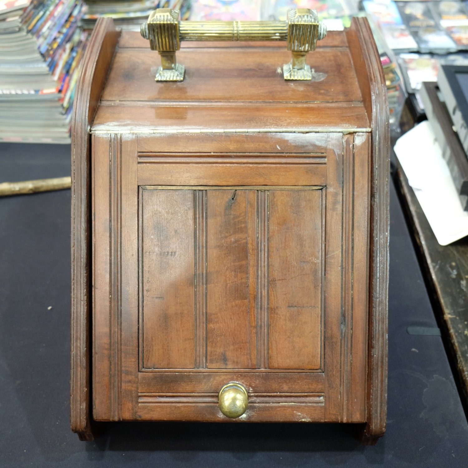19th Century brass mounted mahogany purdonium with liner, H: 39 cm. Not available for in-house P&P