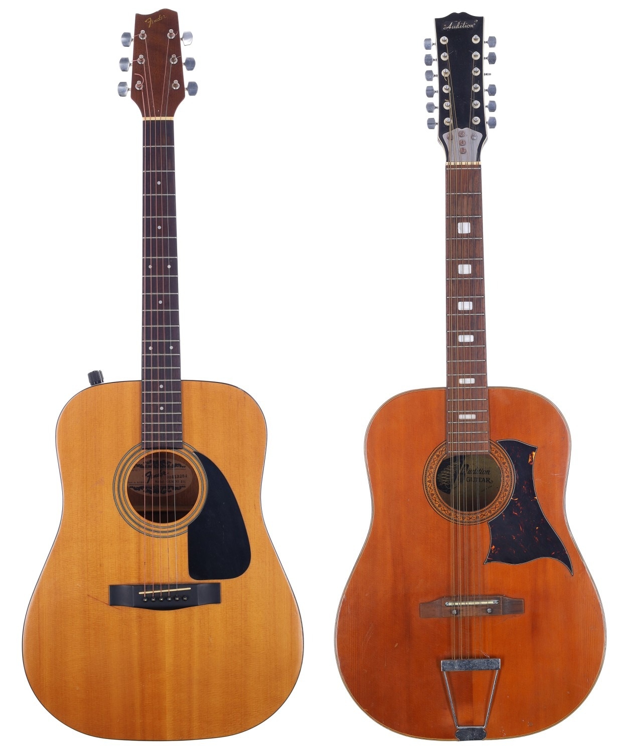 Fender Gemini II E acoustic guitar, made in Korea; together with an Audition twelve string guitar in need of some attention (2)