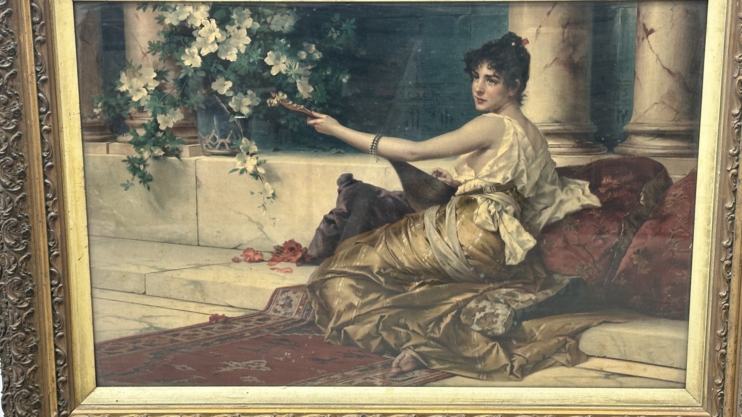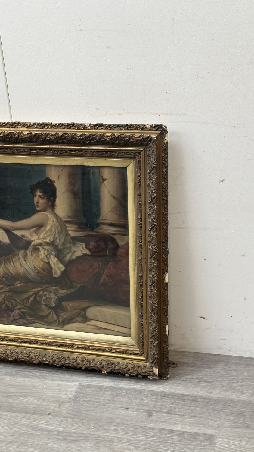 A late 19th/early 20th century gilt framed Konrad Kiesel (1846-1921) 'The Mandolin Player' print - approx. 71cm high x 97cm wide