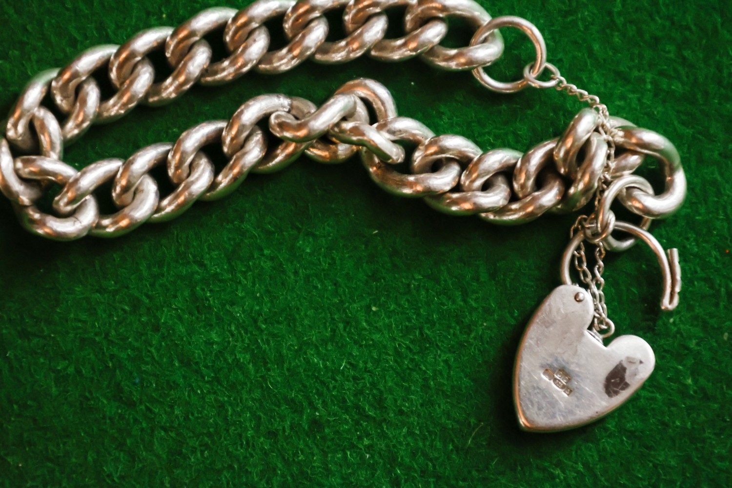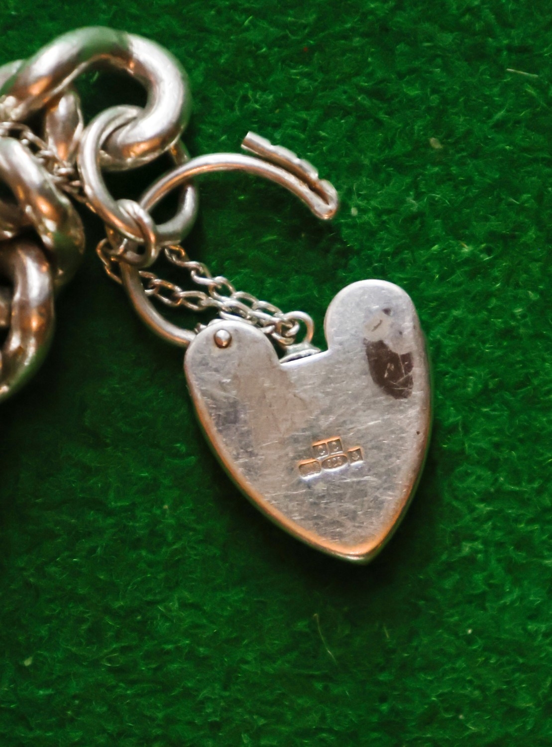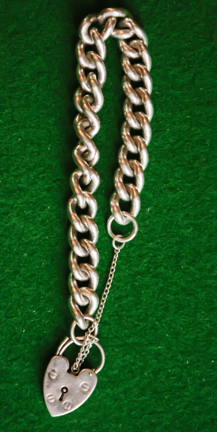 Silver Ladies Curblink Bracelet Heart Padlock Clasp Safety Chain Present