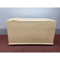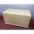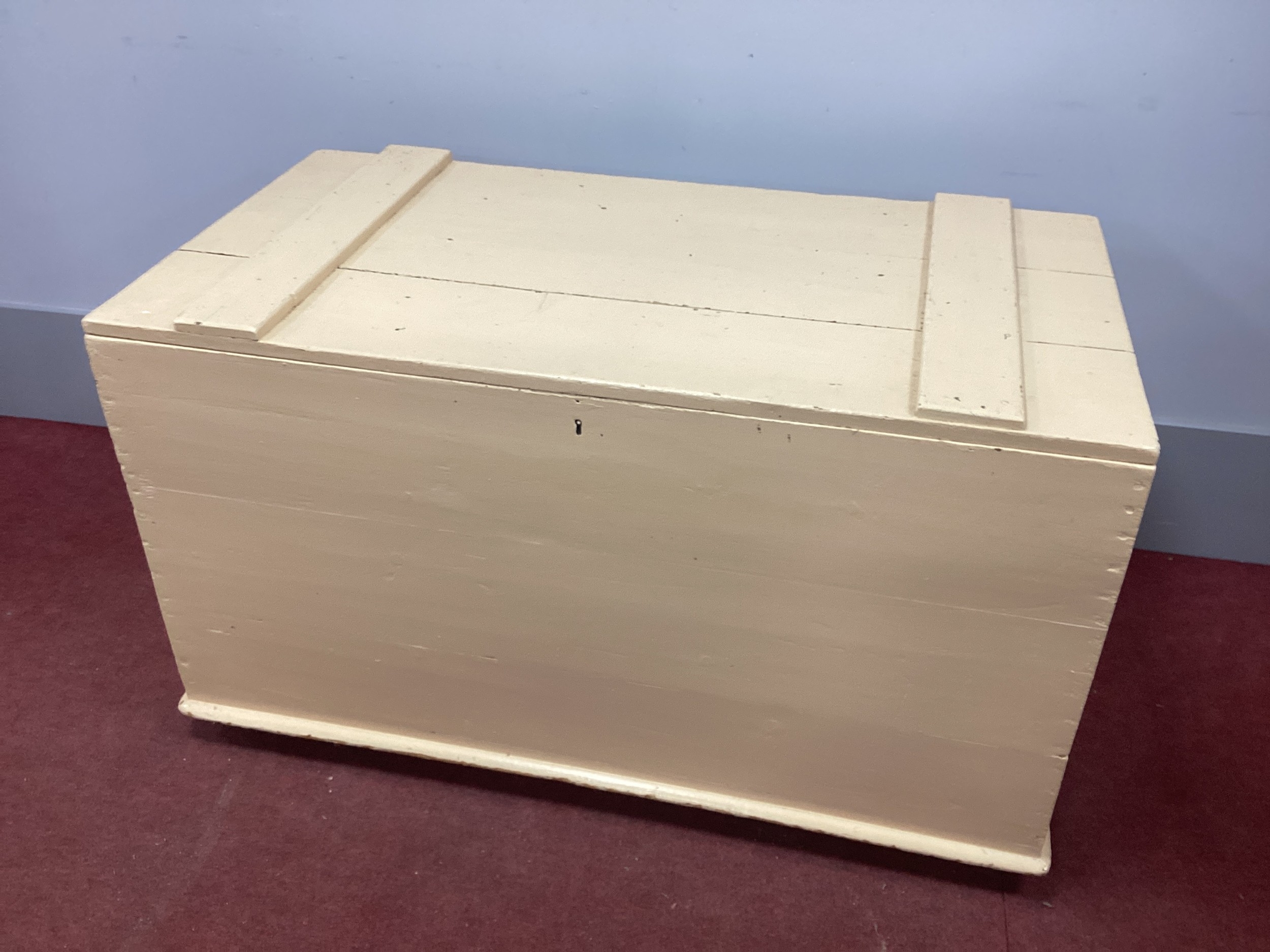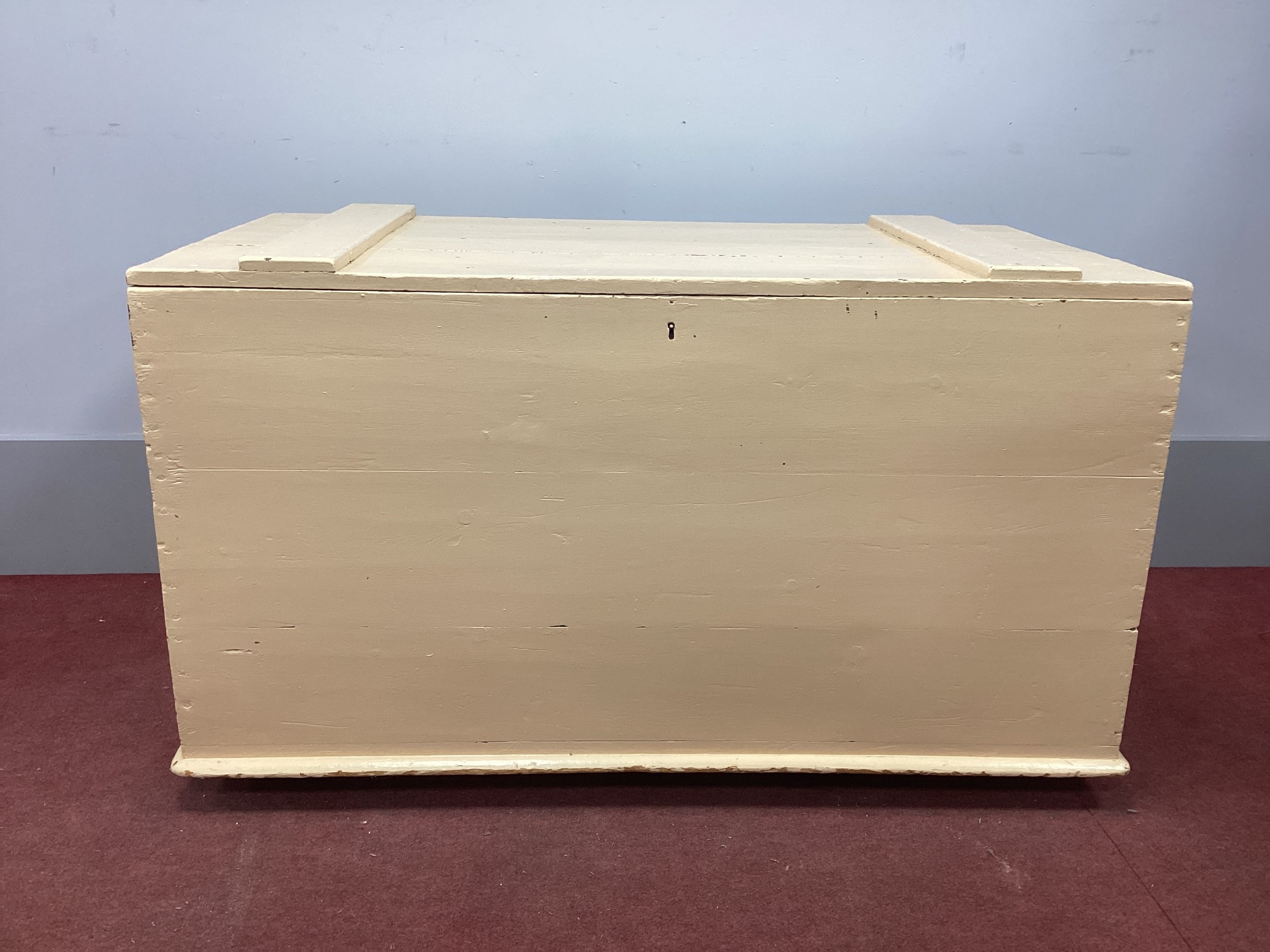A XIX Century Painted Pine Blanket Box, with hinged lid on castors, 114cm wide.