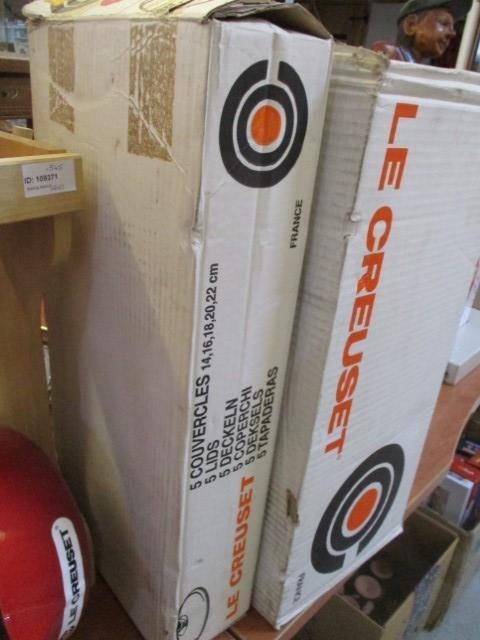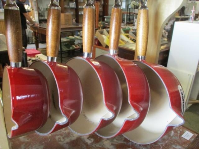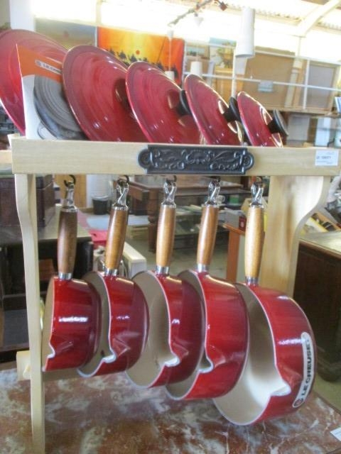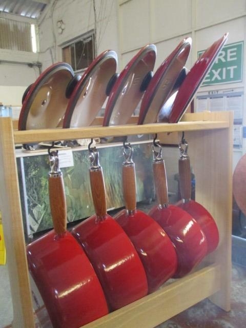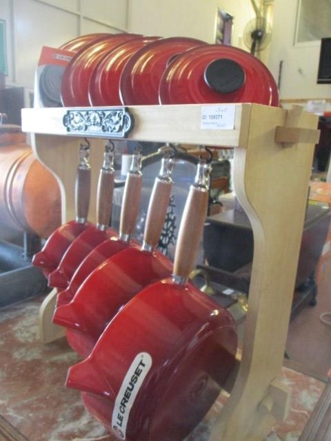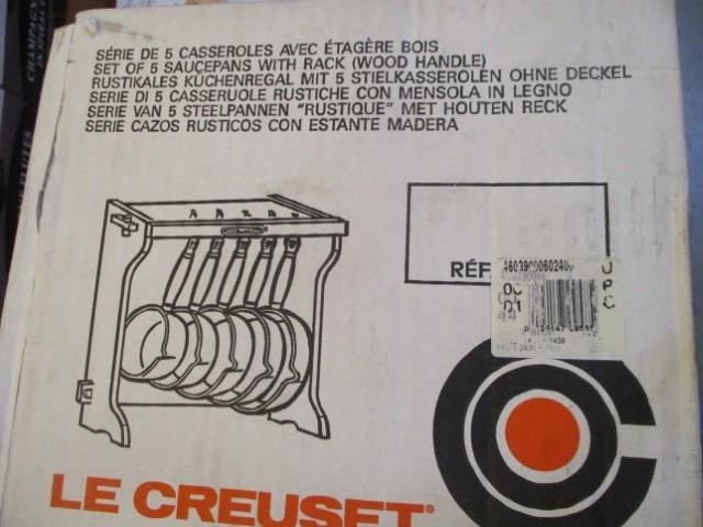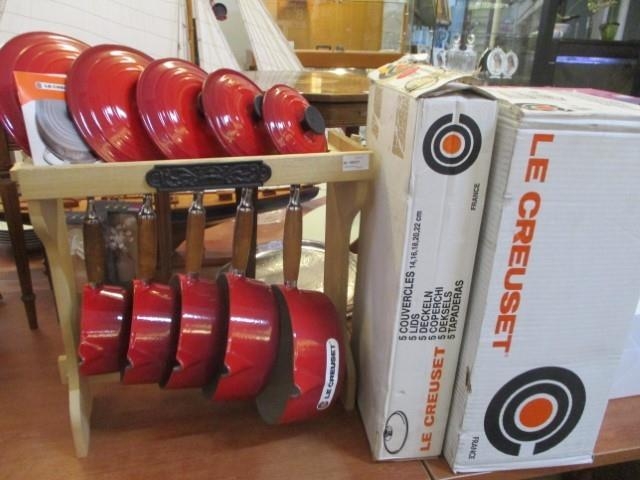 Set of 5x Le Creuset Saucepans with Wood Rack (wood handle and lid) New