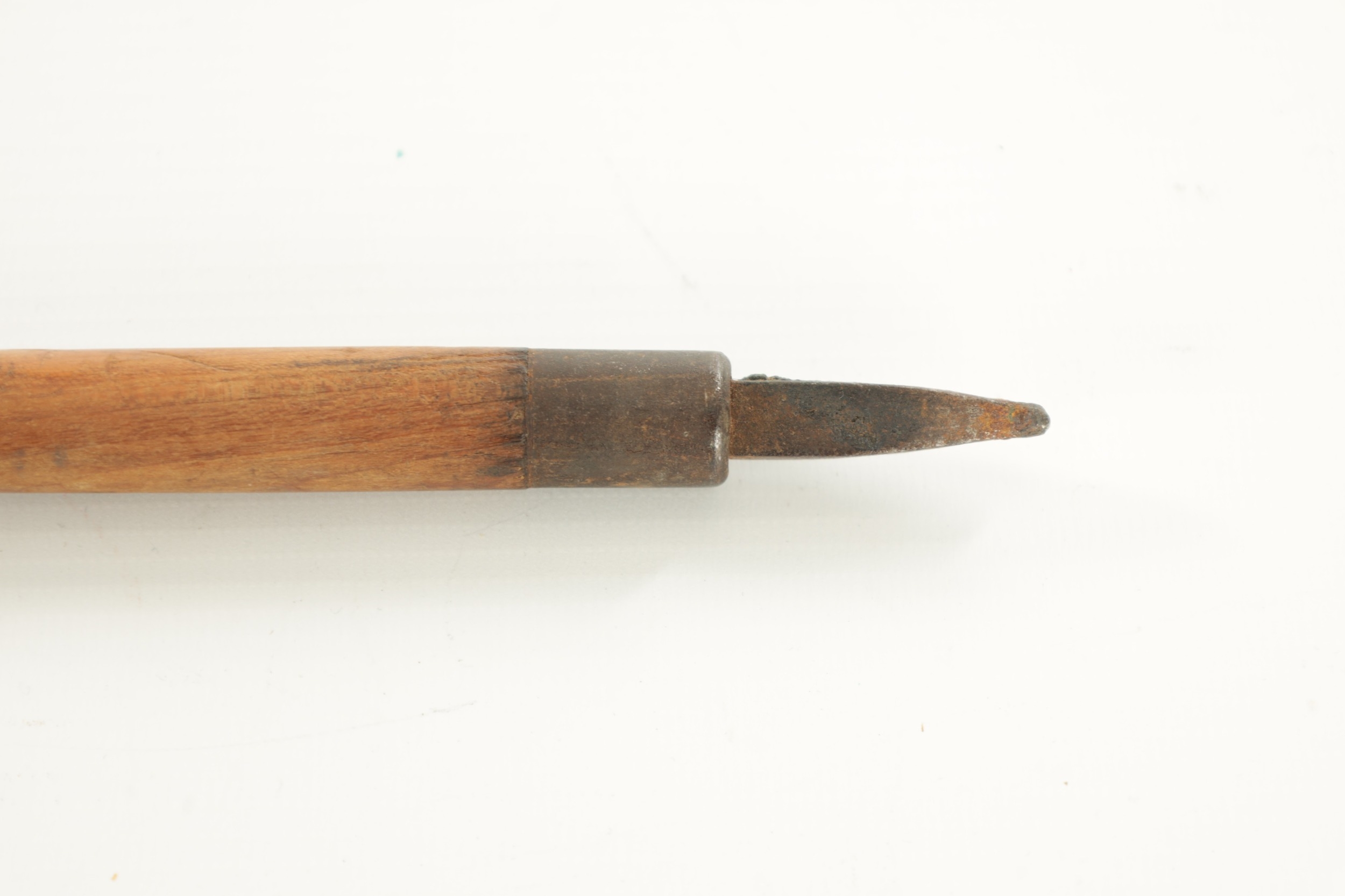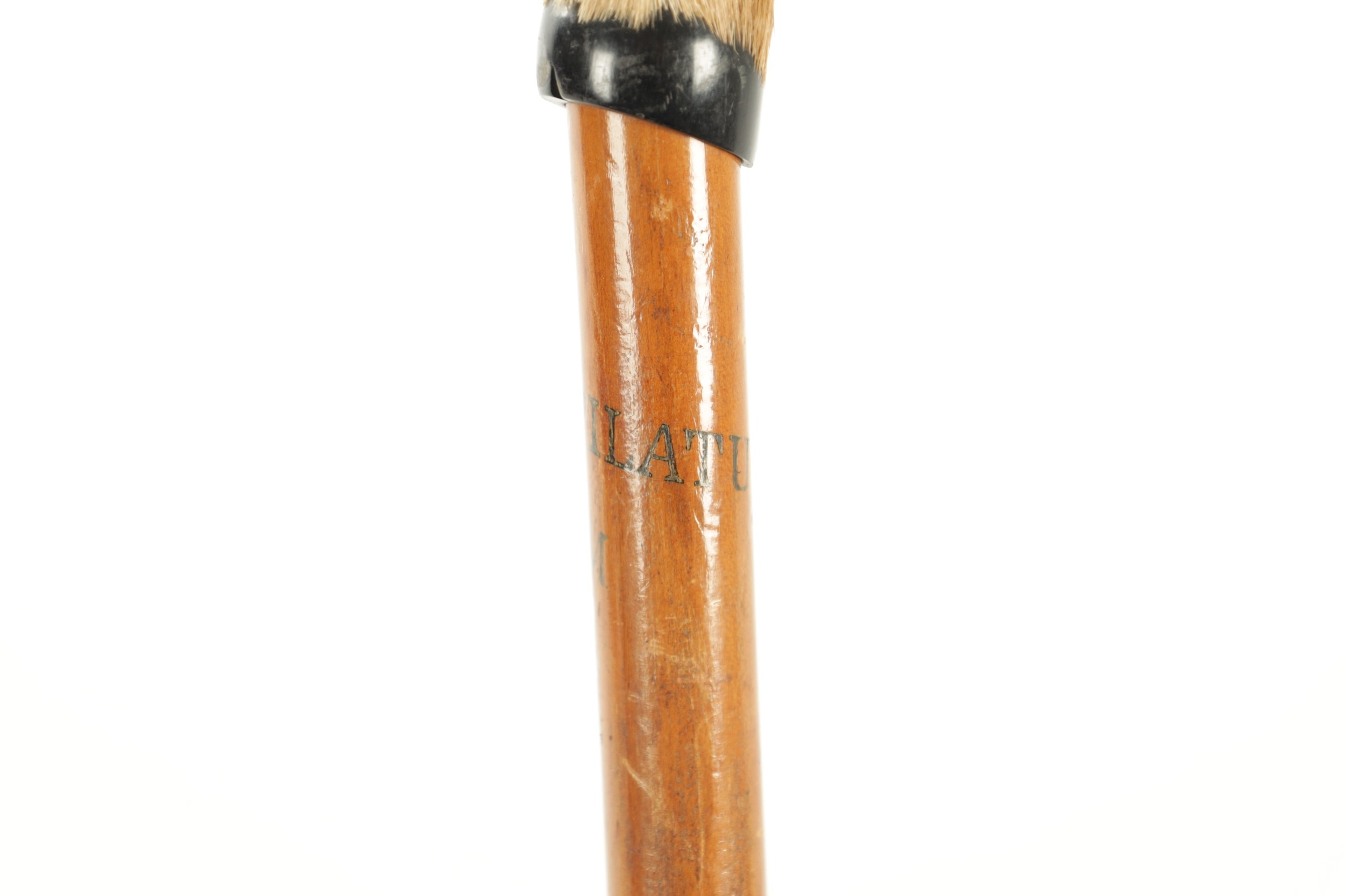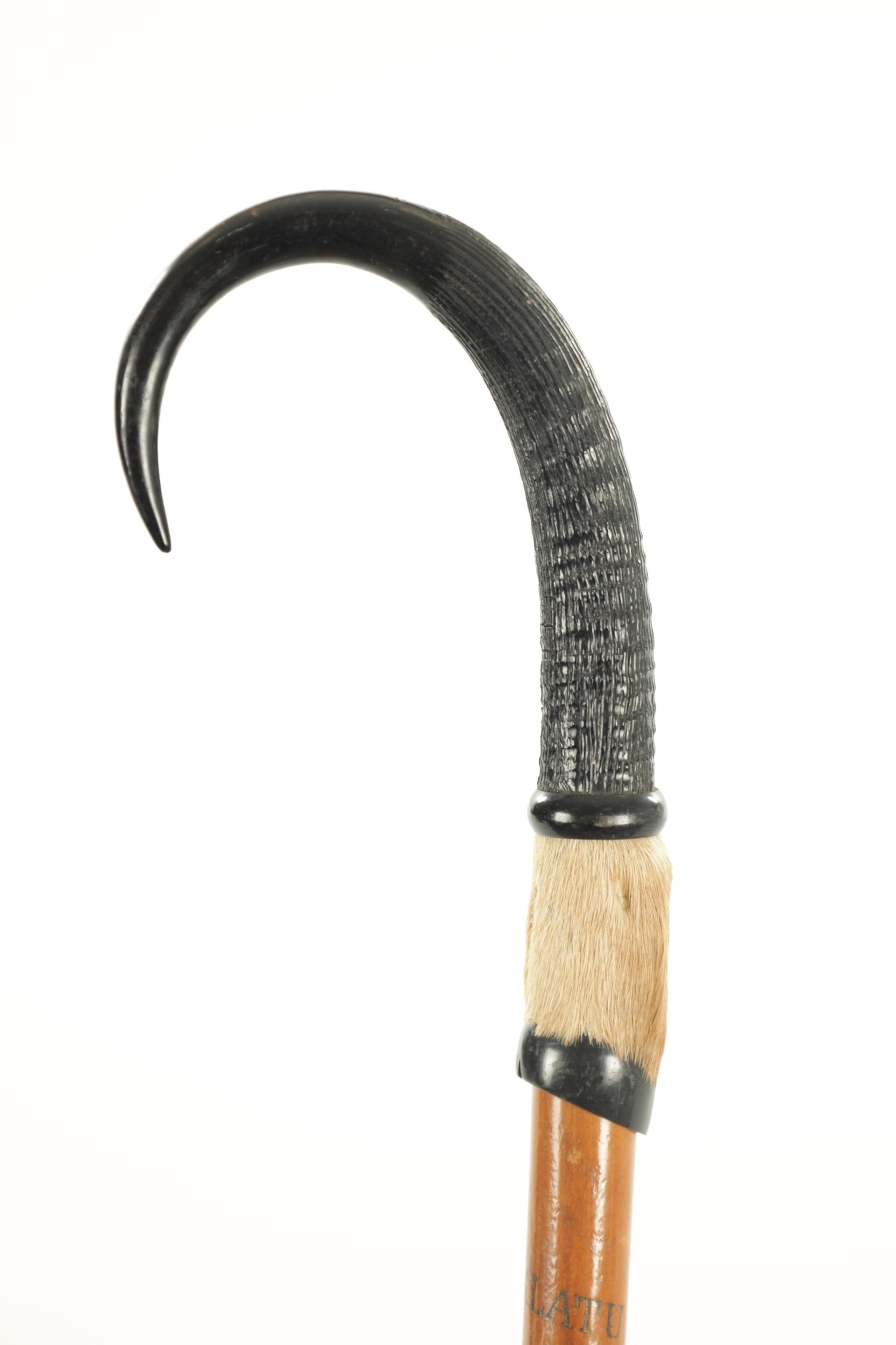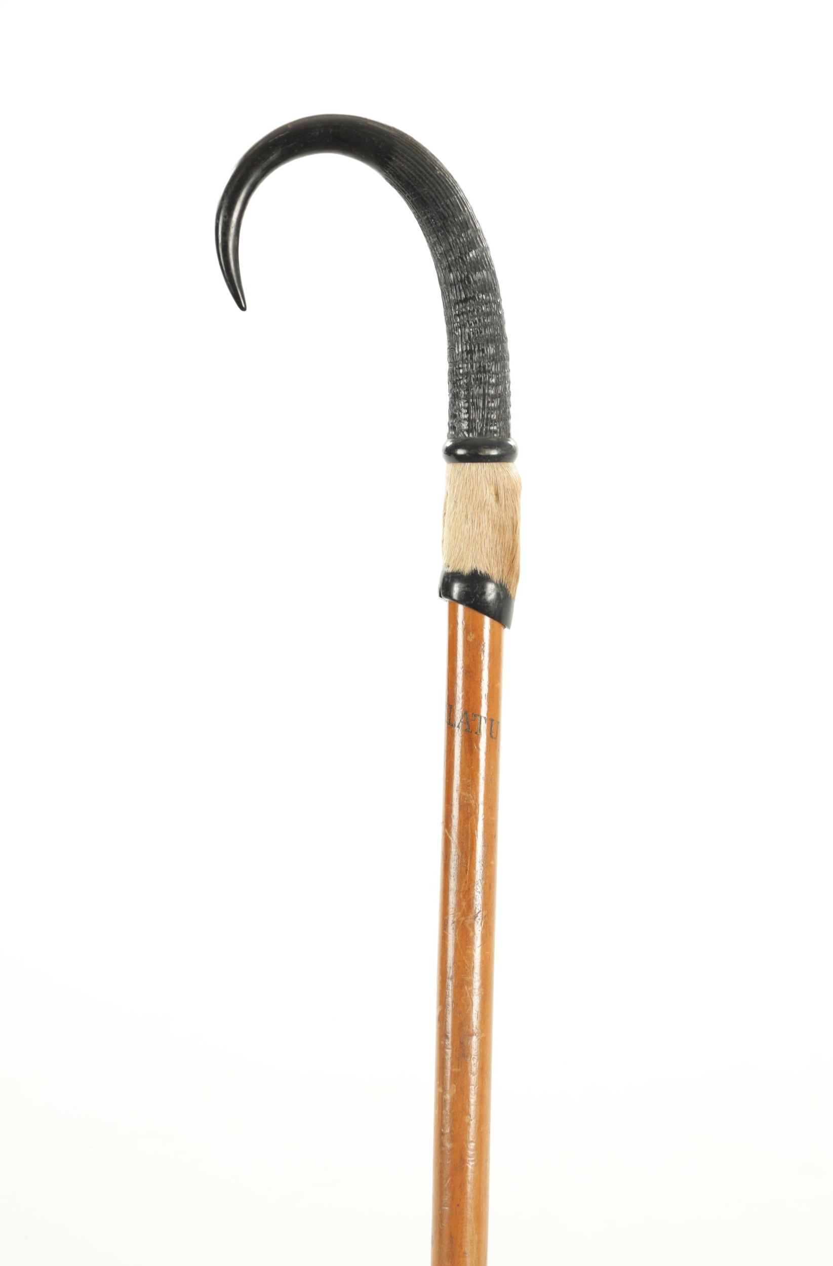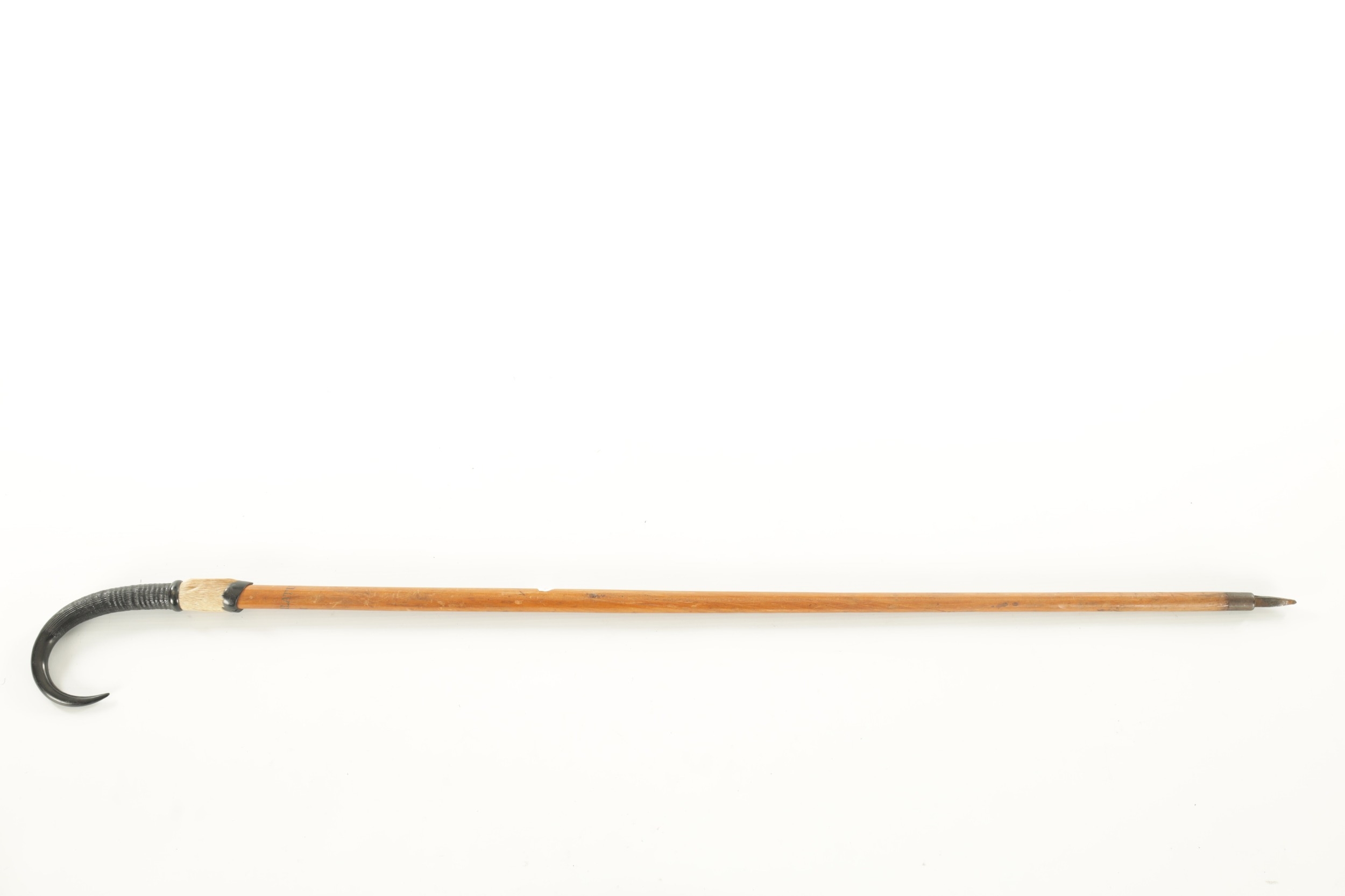 A SWISS HIKING WALKING STICK with a goat horn handle and metal spike tip - engraved Pilatus-Kulm to the shaft. (97cm overall)
