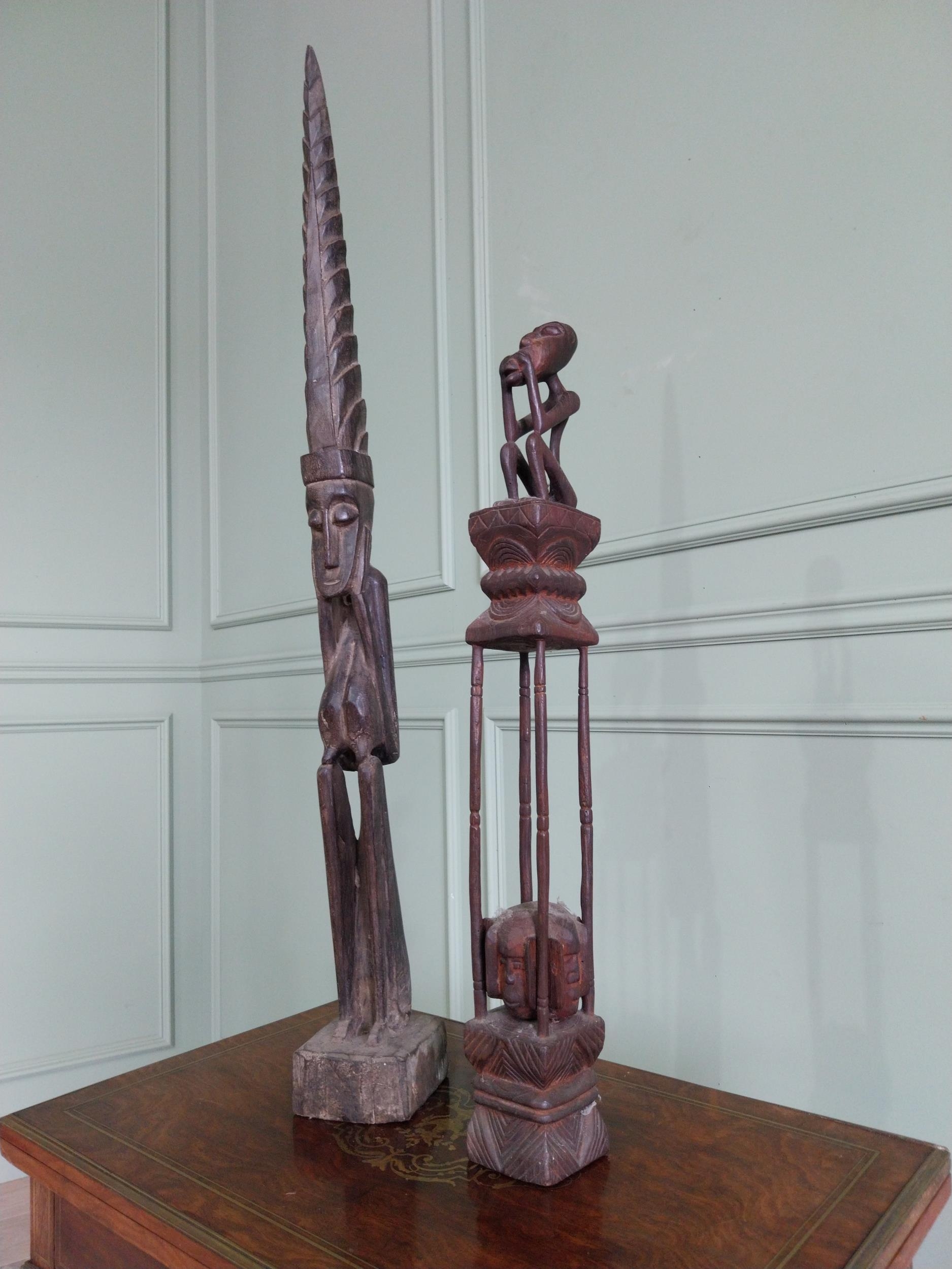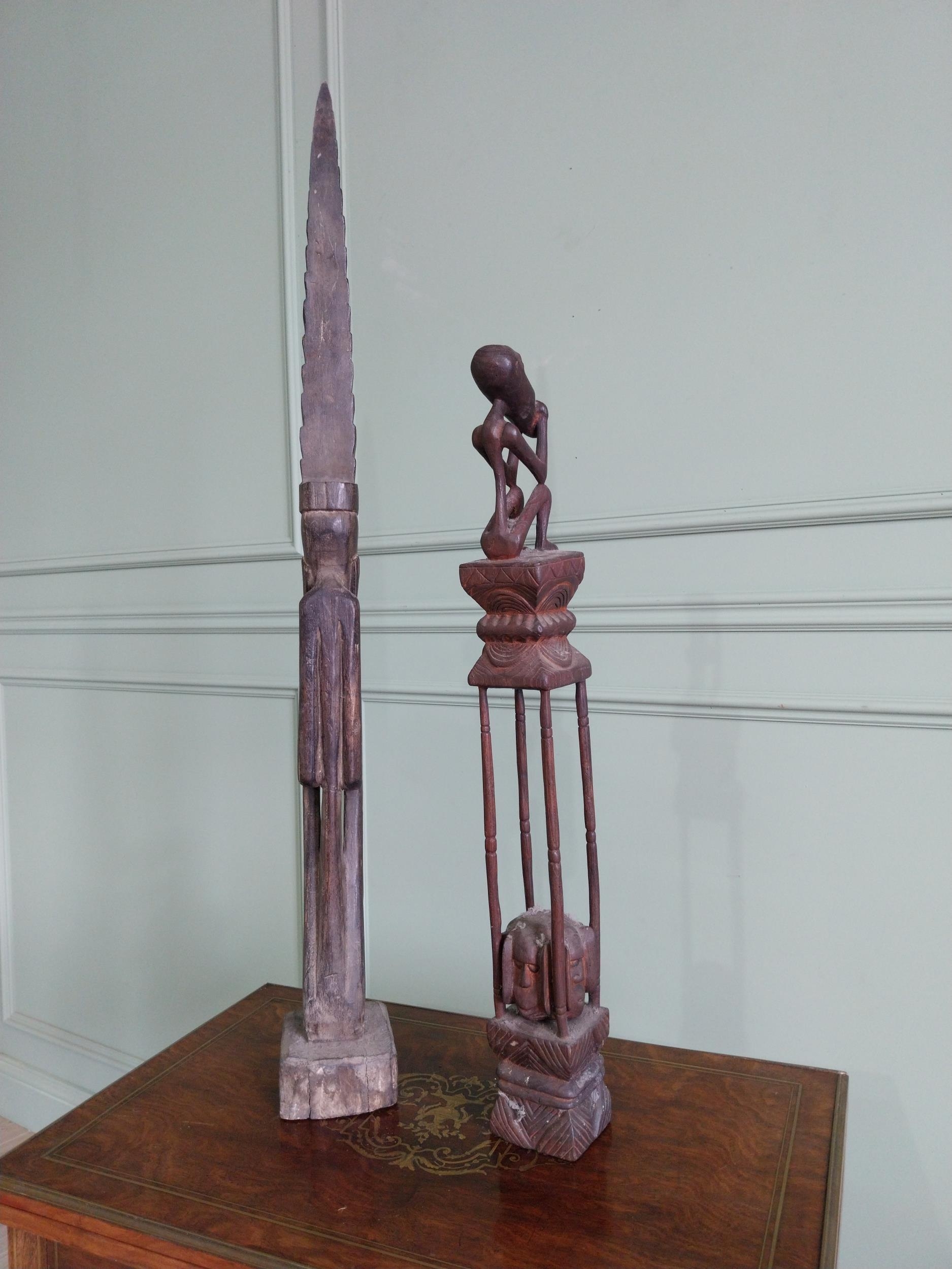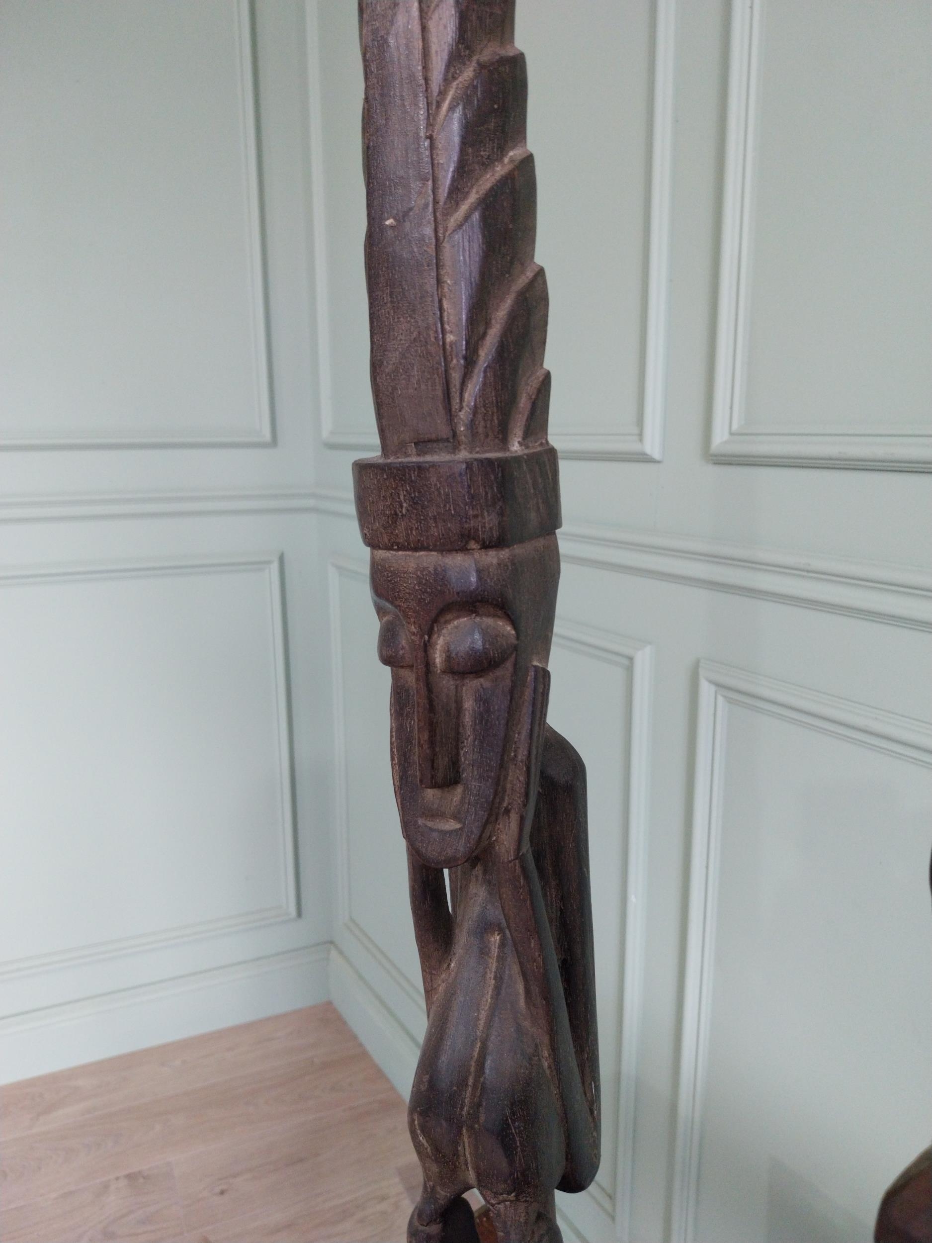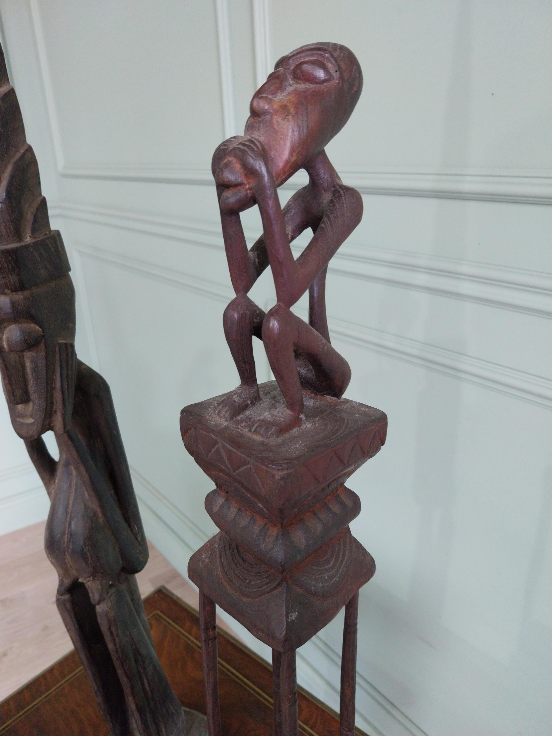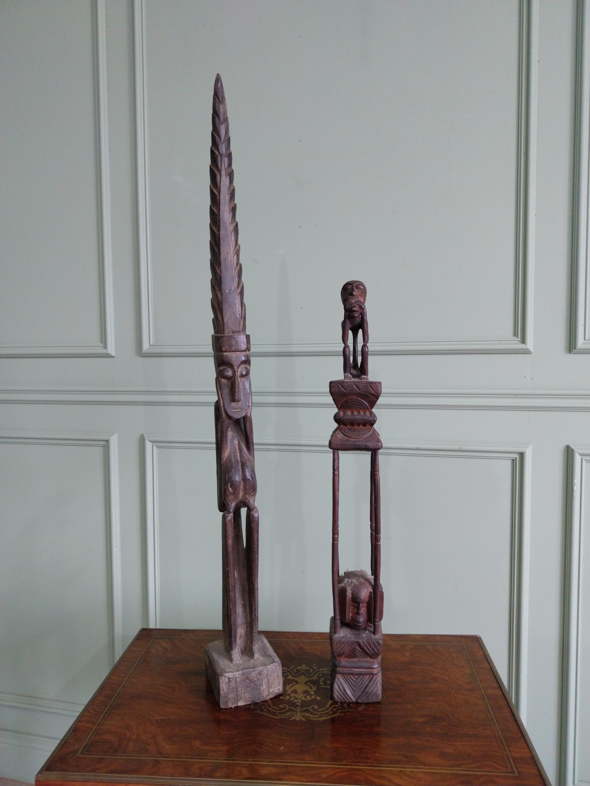 Two African carved hardwood figures {101 cm H and 70 cm H}.