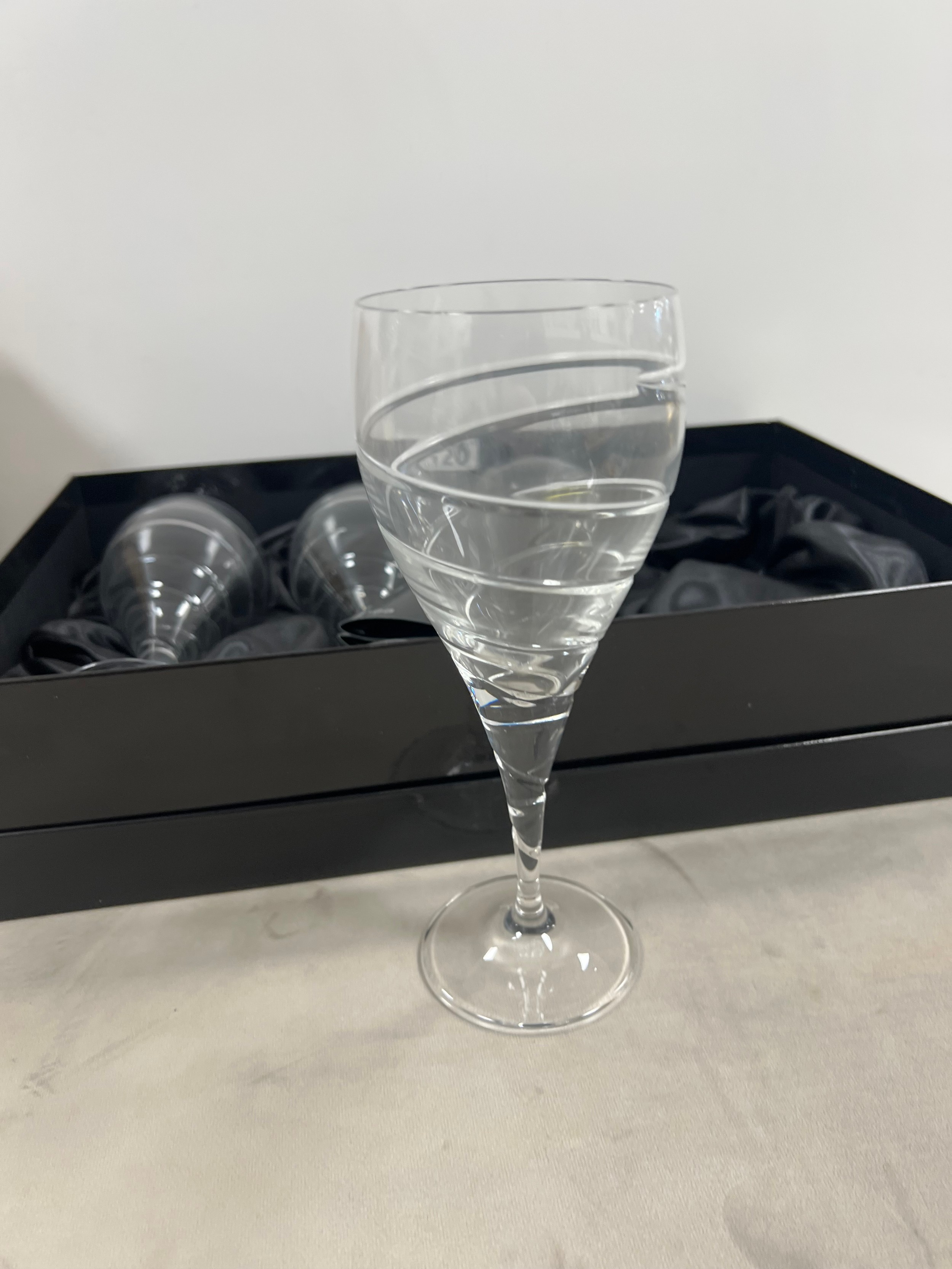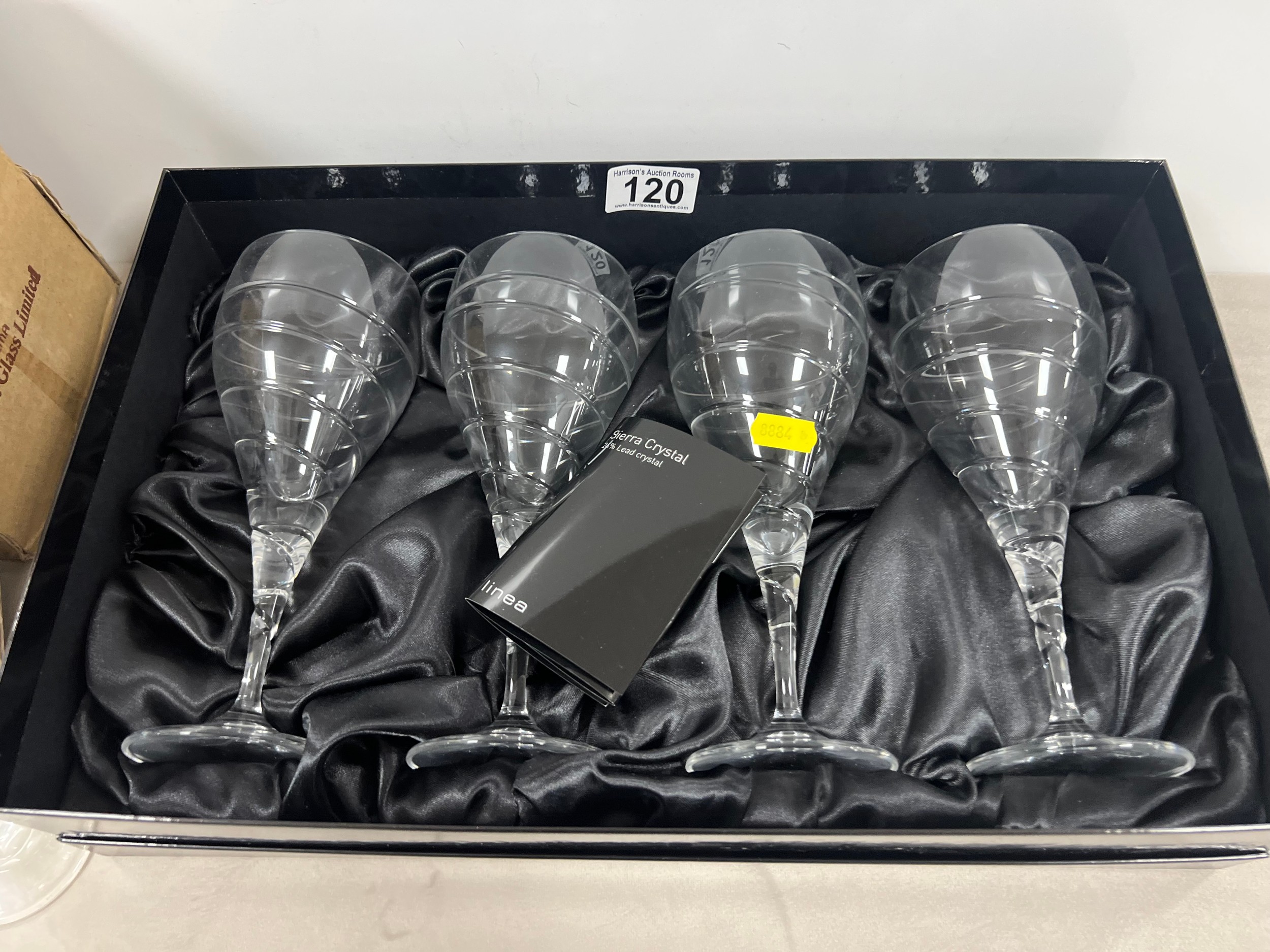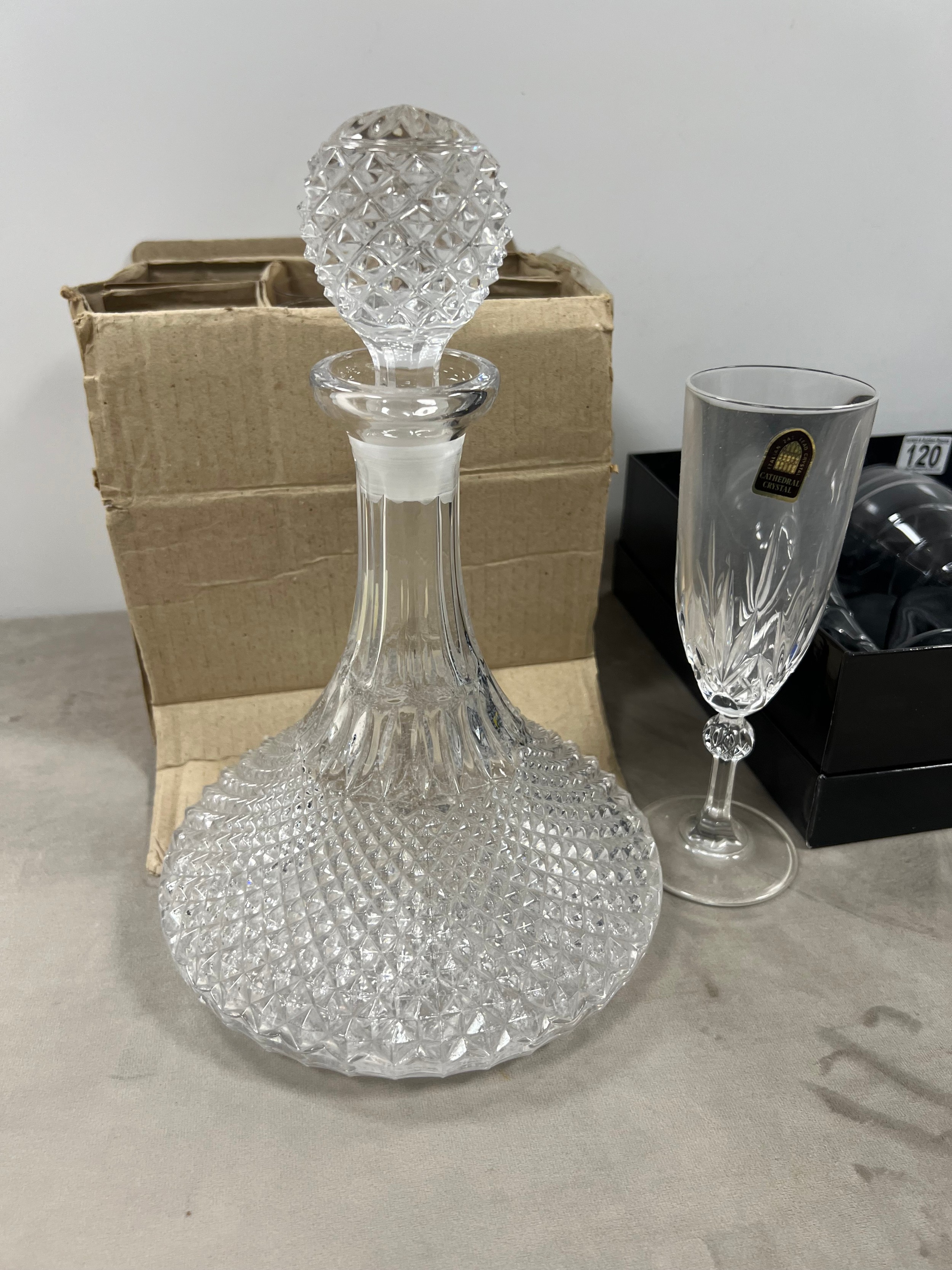 Set 4 boxed sierra crystal wine glasses + ships decanter + box glasses
