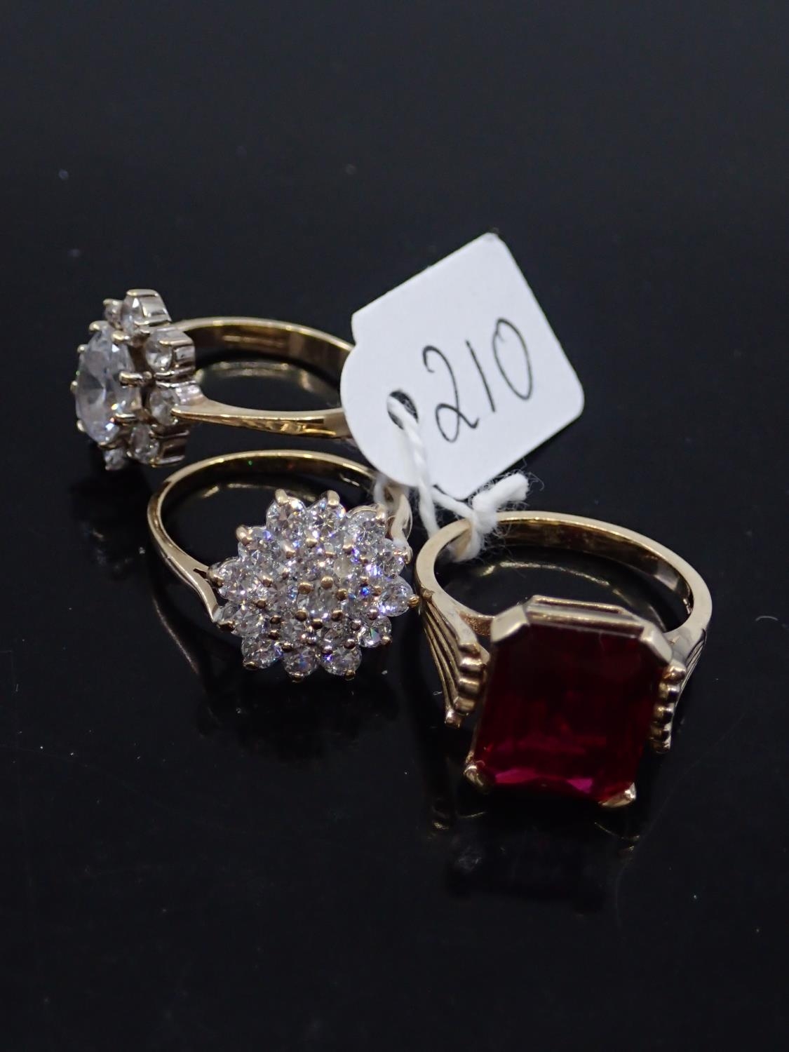 Three ladies 9ct gold dress rings approx. 11.3 grams, finger size i & M