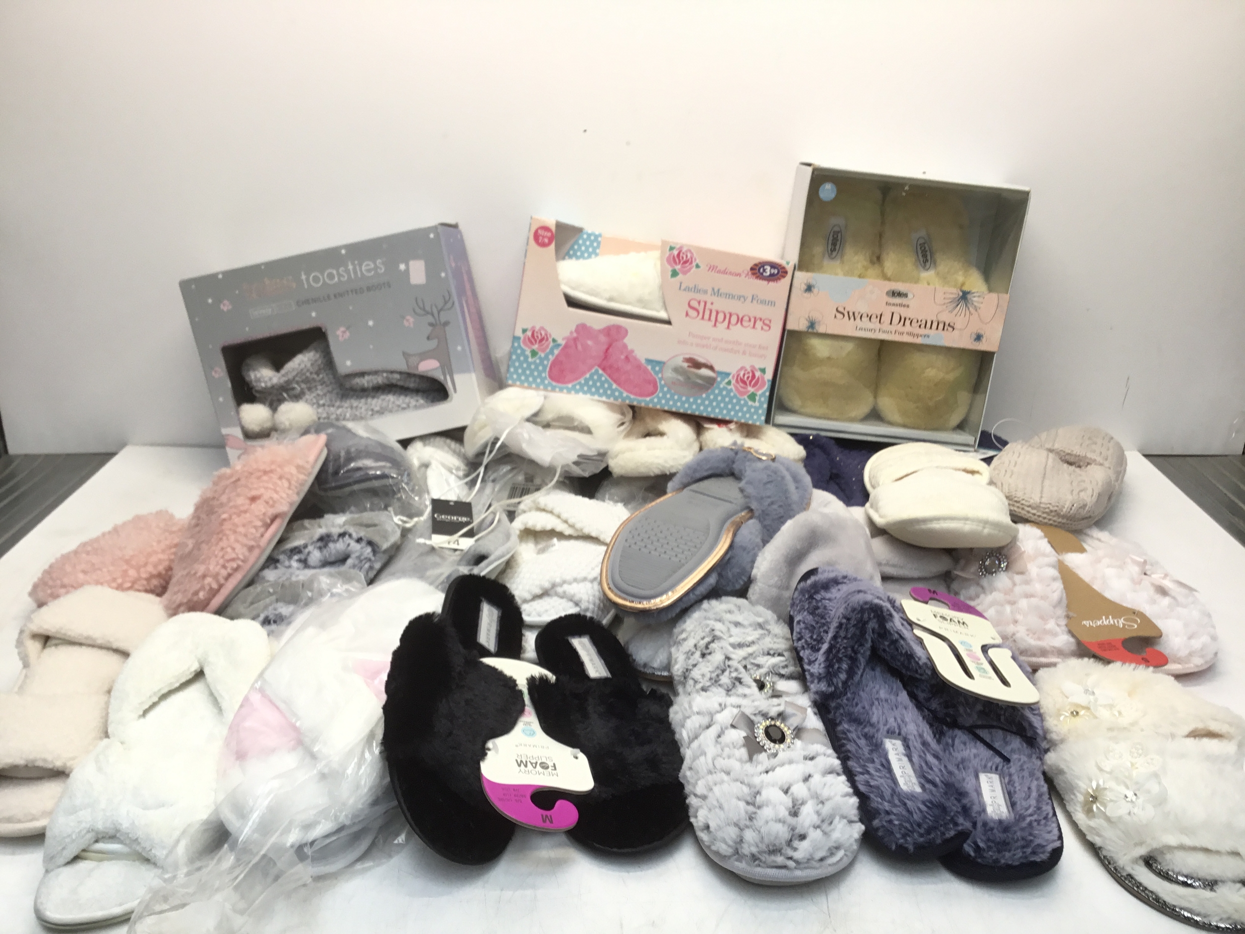 A quantity of ladies slippers mostly retail packed sizes S and M