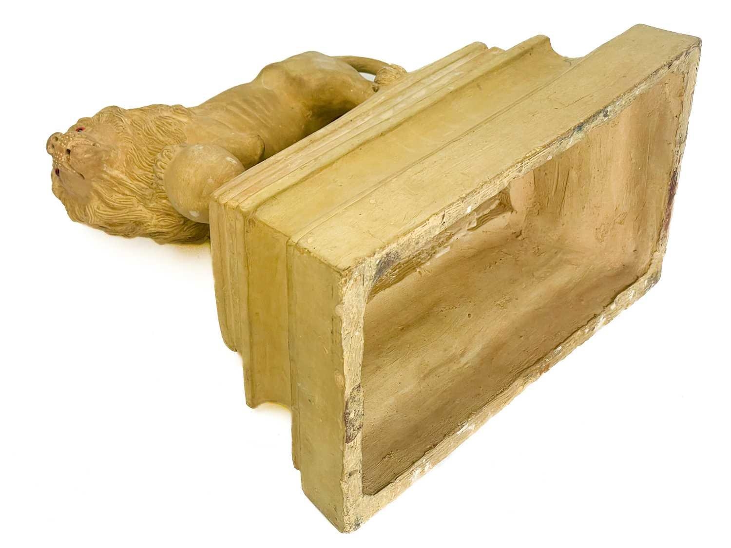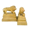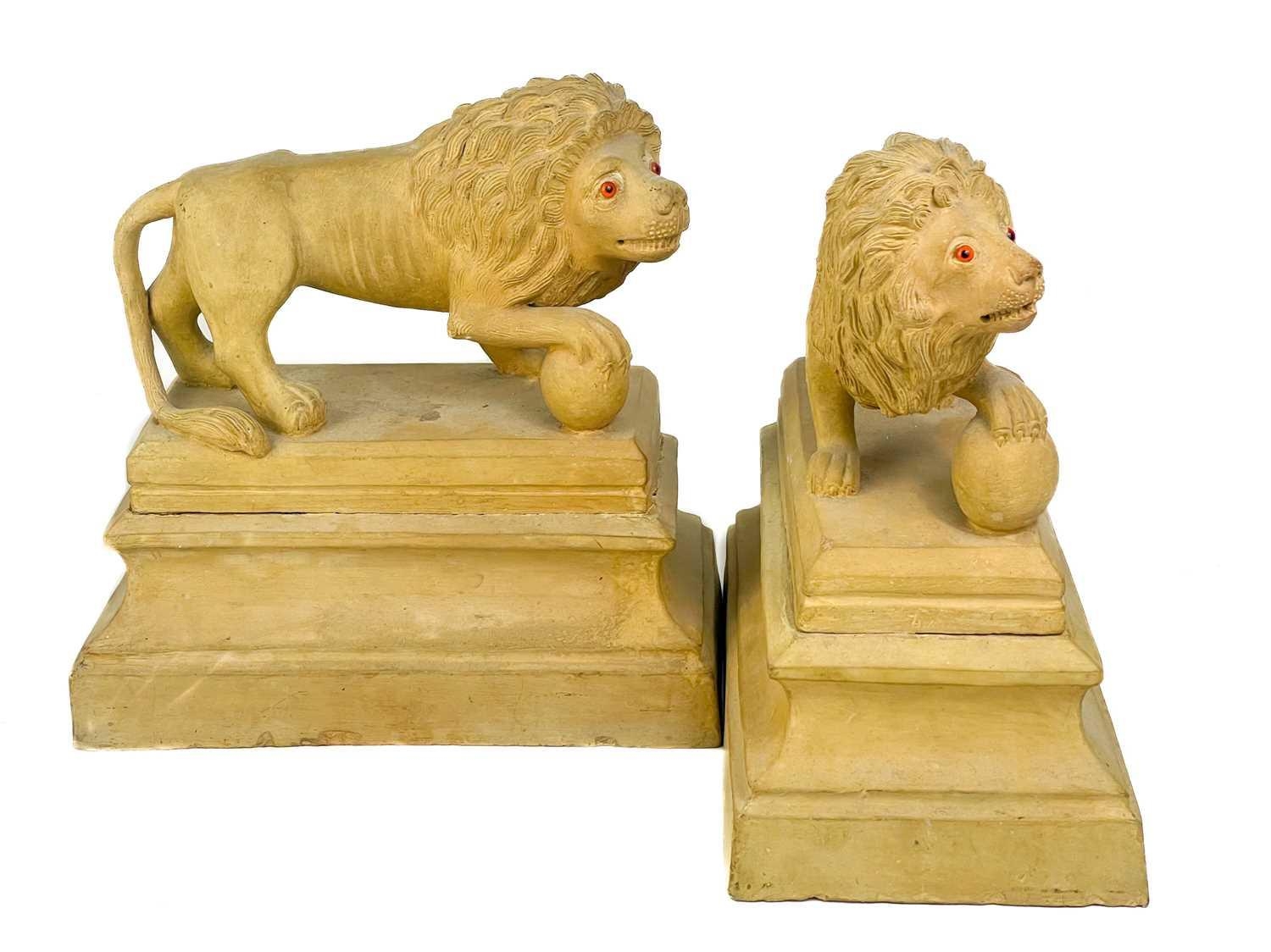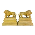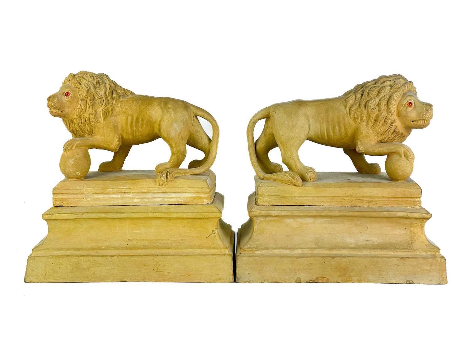 A pair of early 20th century terracotta Medici lions. Raised on plinth bases indistinctly signed and dated to the inner base of one, height 27cm width 27cm depth 15cm. (2)