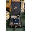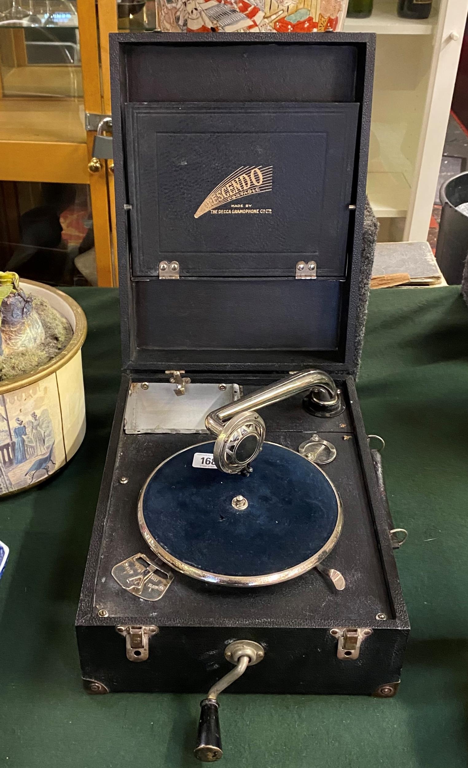Orescendo portable wind up gramophone by Decca with spare needle and handle