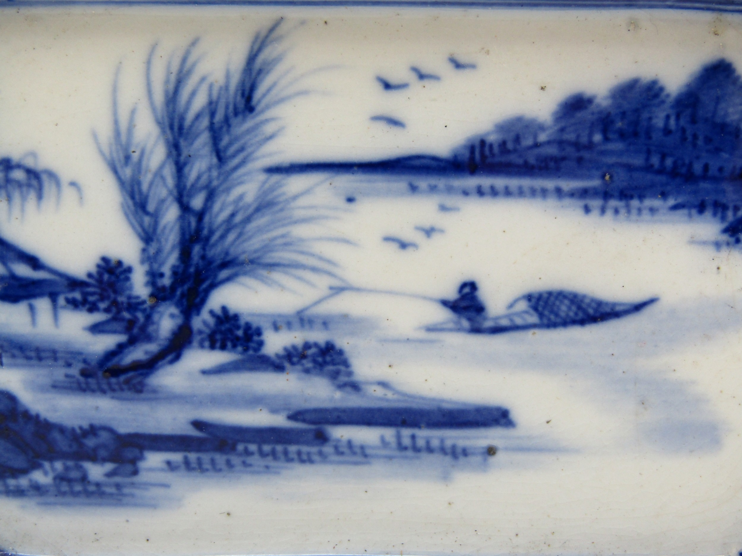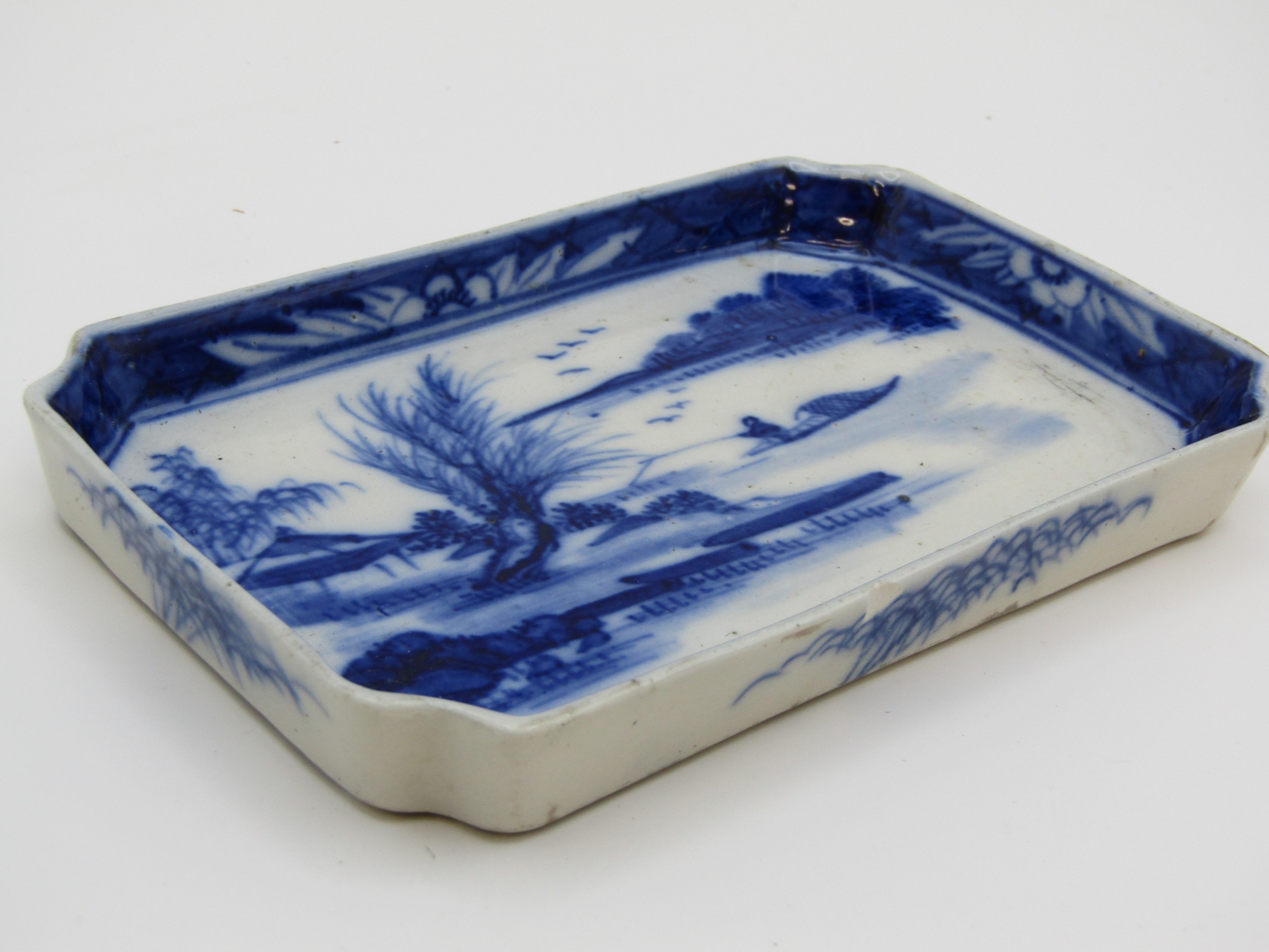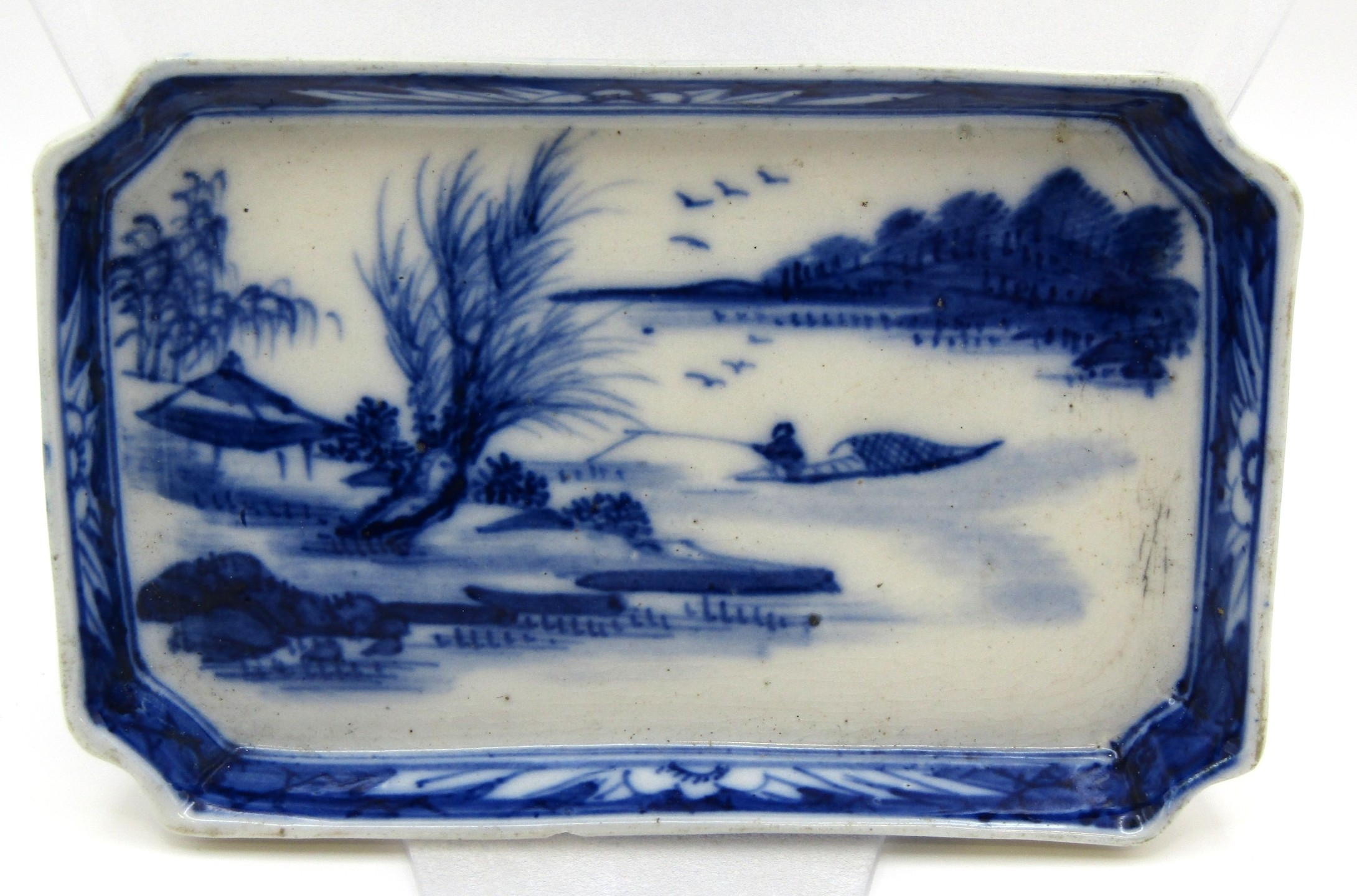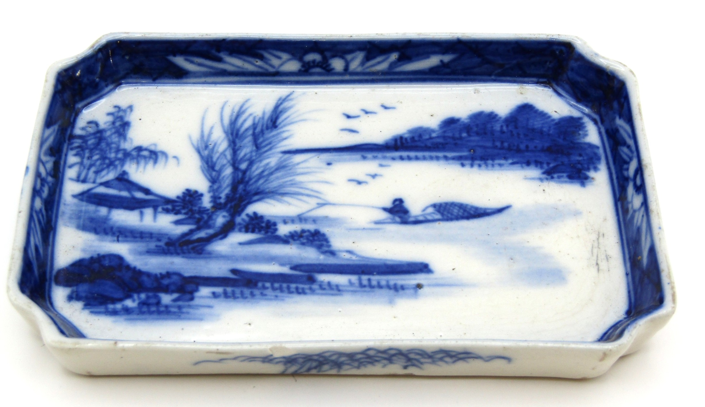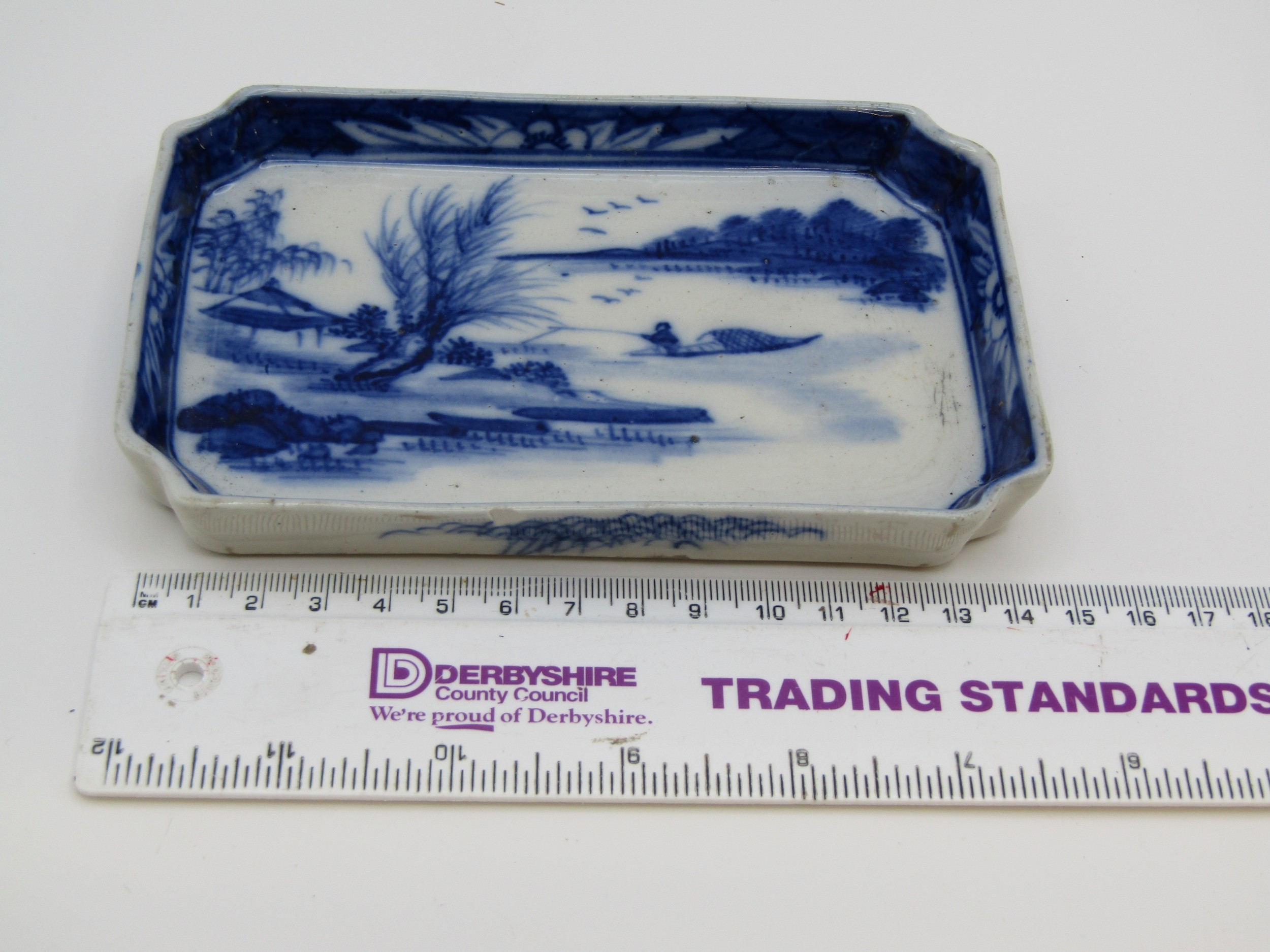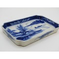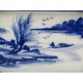 Antique Chinese hand painted blue and white underglaze porcelain dish.