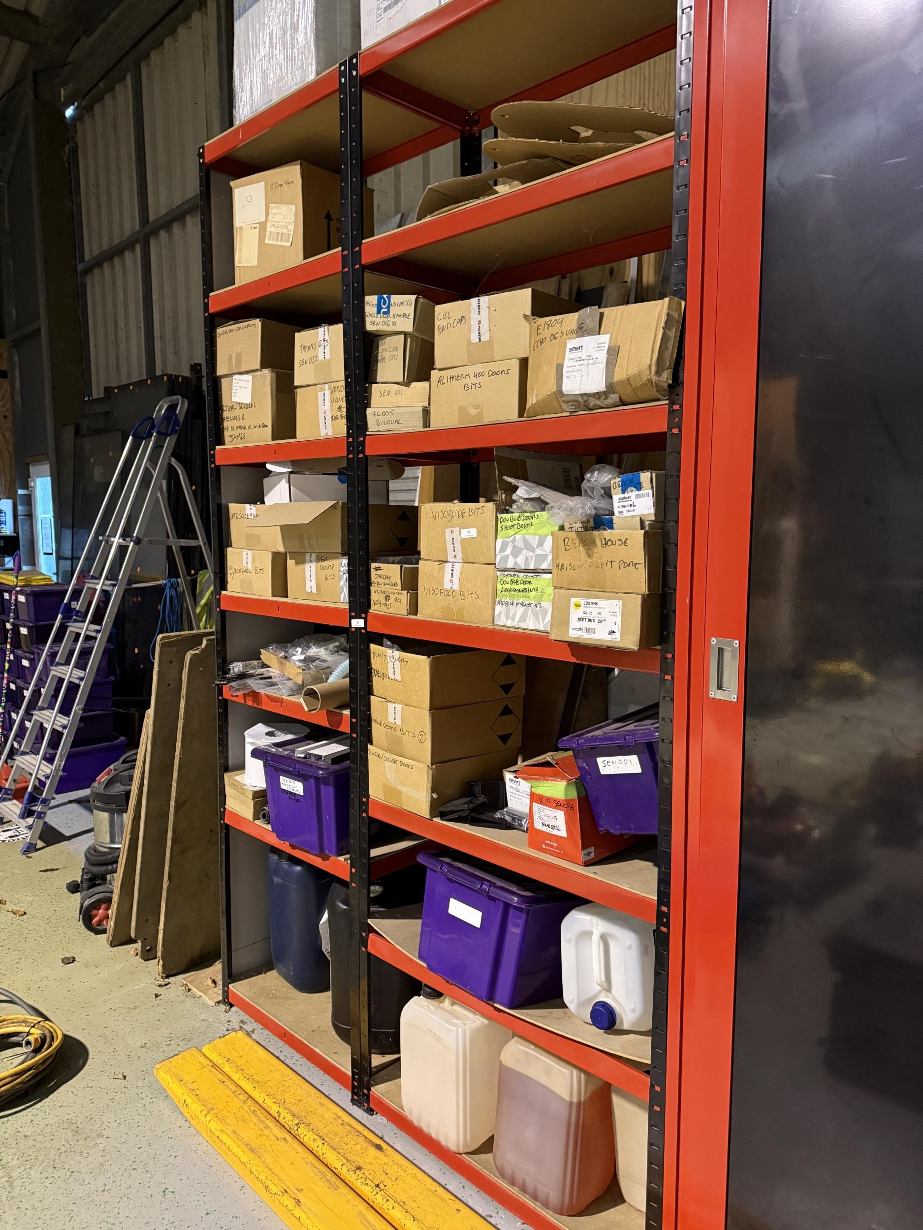 Two metallic seven tier shelf units