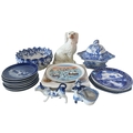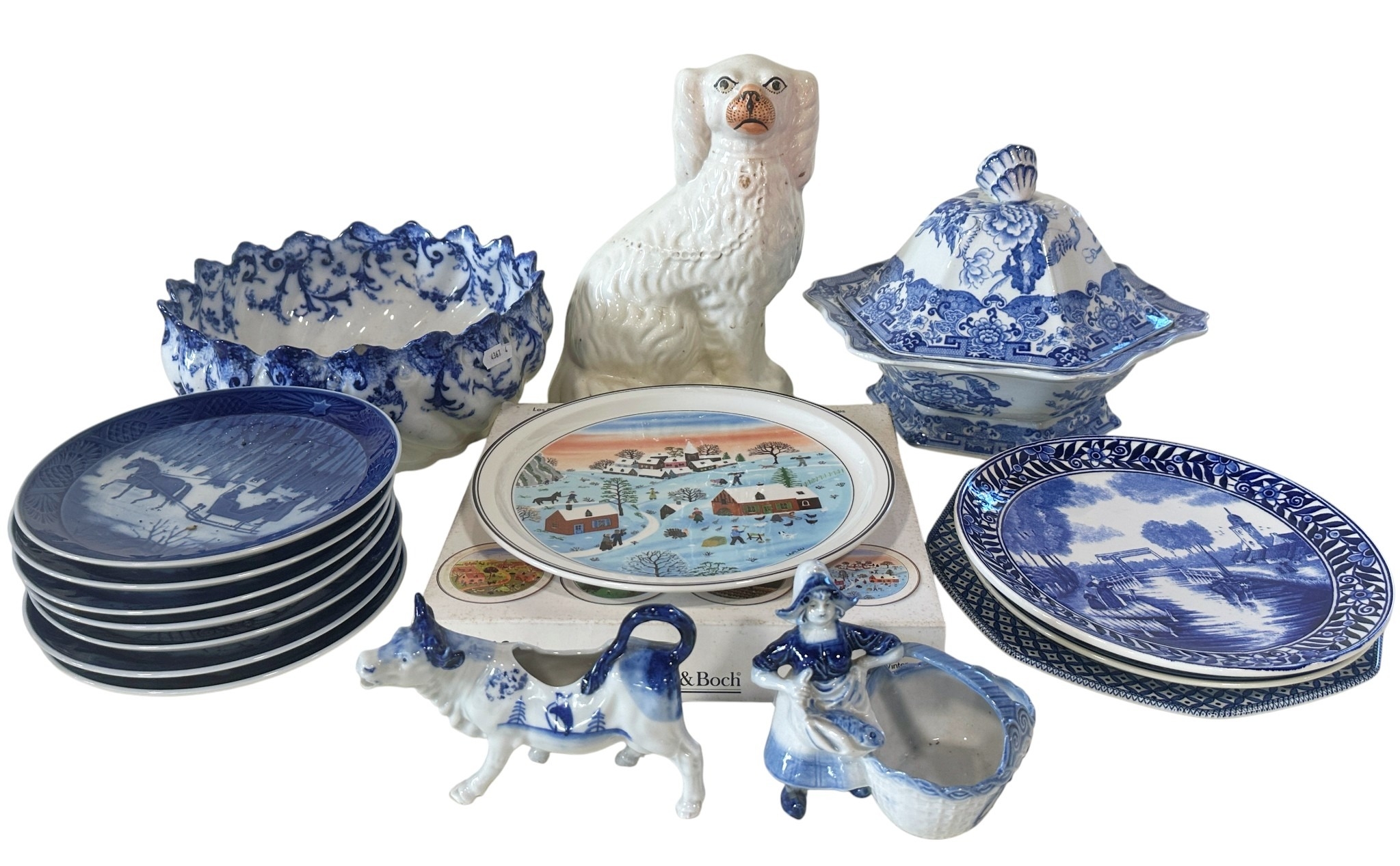 A Masons ironstone tureen and cover, of hexagonal form, seven Copenhagen annual plates, Staffordshire spaniel, etc