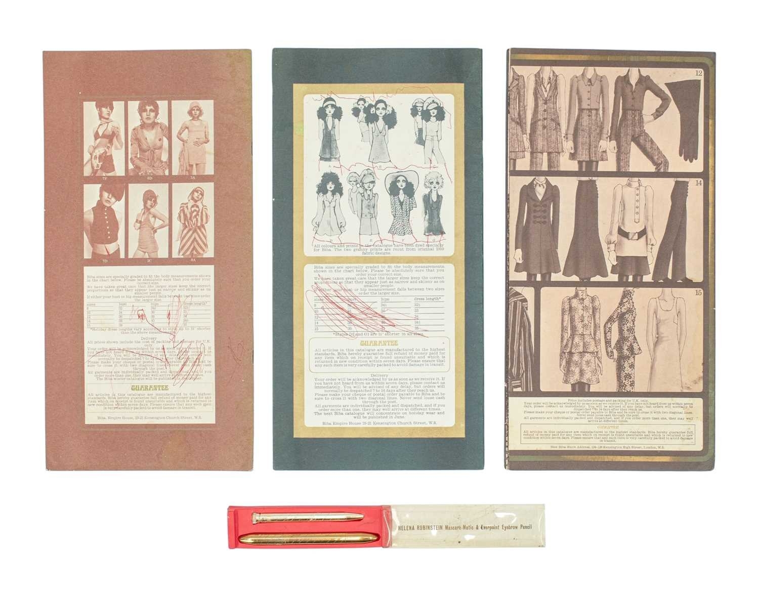 Three BIBA mail order catalogues. From the late 1960s, with a Helena Rubinstein Mascara-Matic & Everpoint Eybrow Pencil, boxed (4).