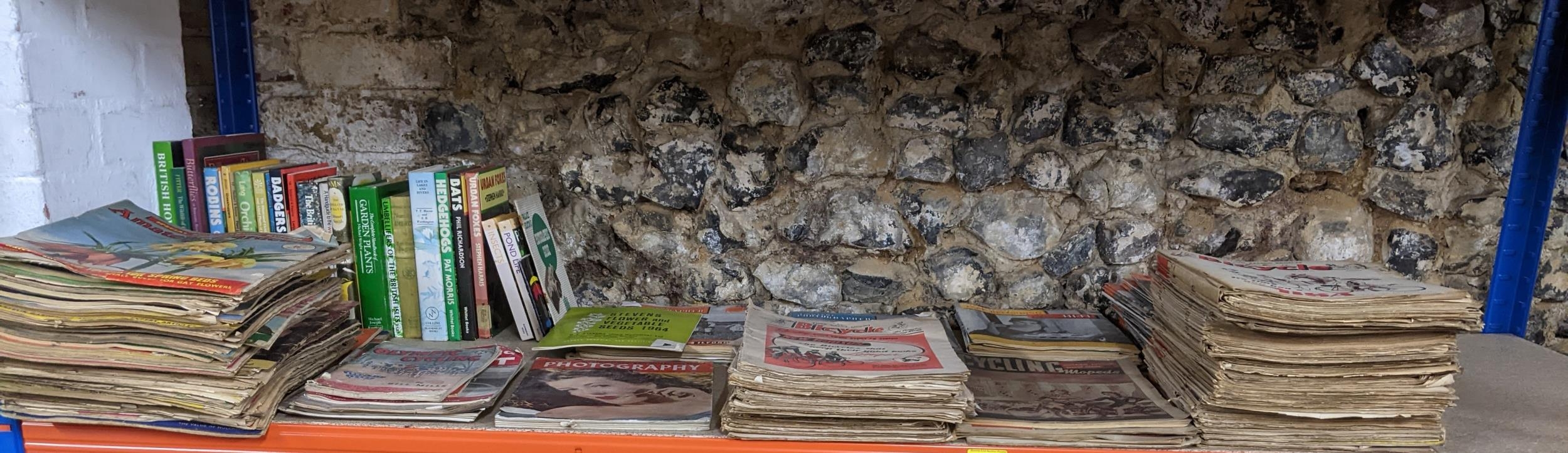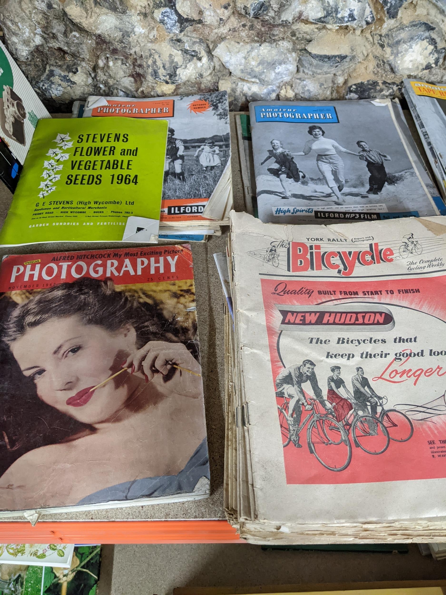 A selection of vintage magazines on photography, gardening and cycling from 1940s, 50s, 60s to include Cycling and Mopeds, The Tape Recorder, The Bicycle, Amateur Photographer and Amateur Gardening, and others, along with a small group of books on nature, birds and gardening Location:G
