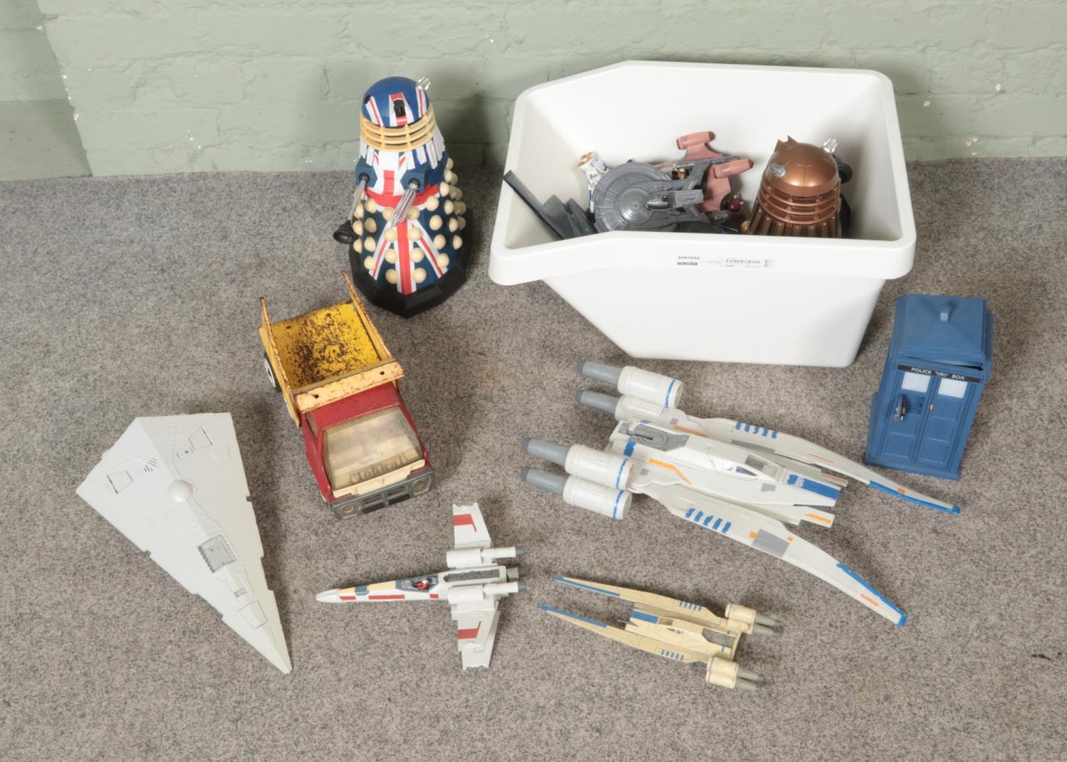A collection of assorted children's toys to include Tonka dumper truck, Doctor Who and Star Wars.