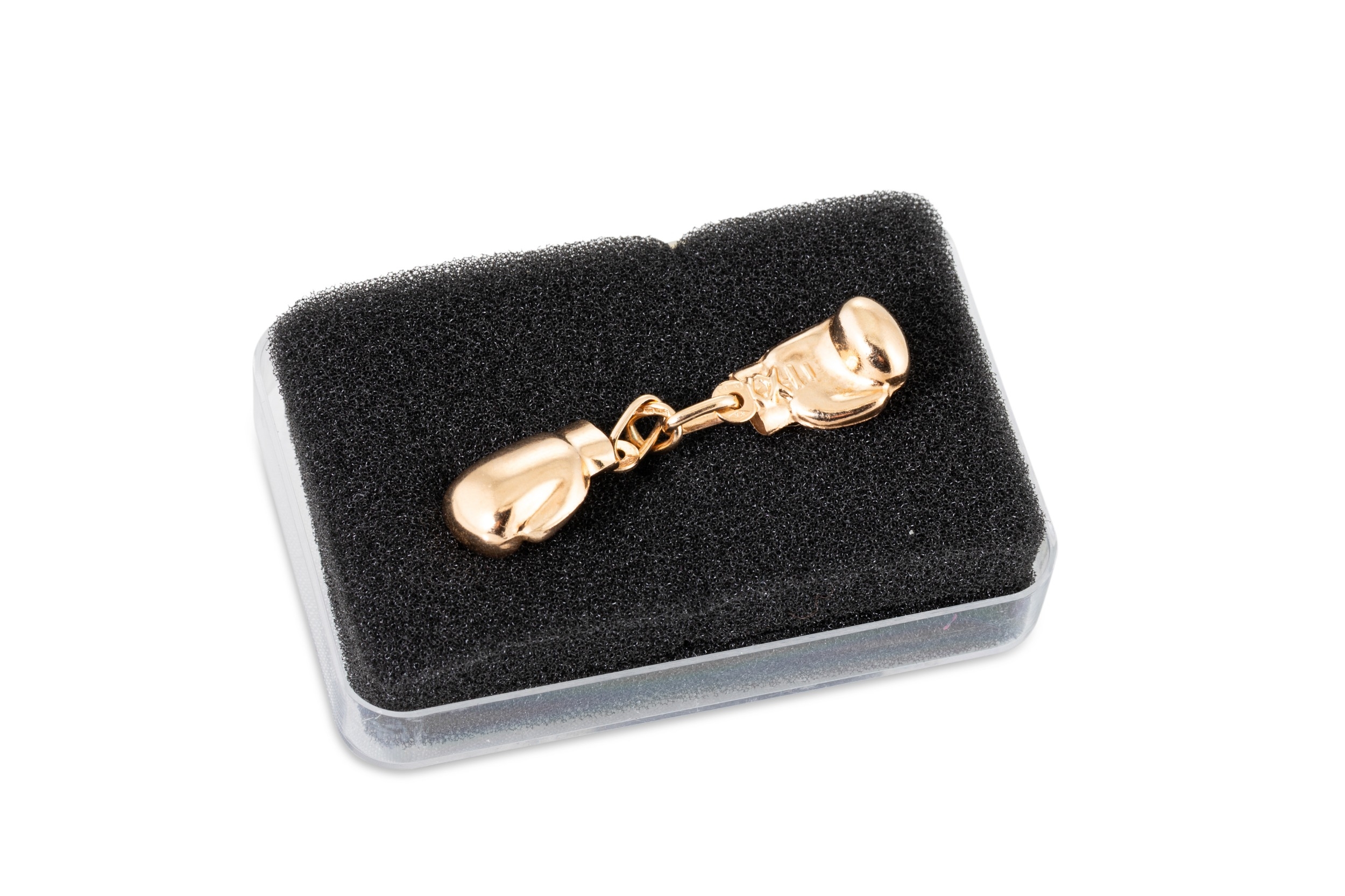 A 9CT GOLD BOXING GLOVES CHARM, 1.95 g.