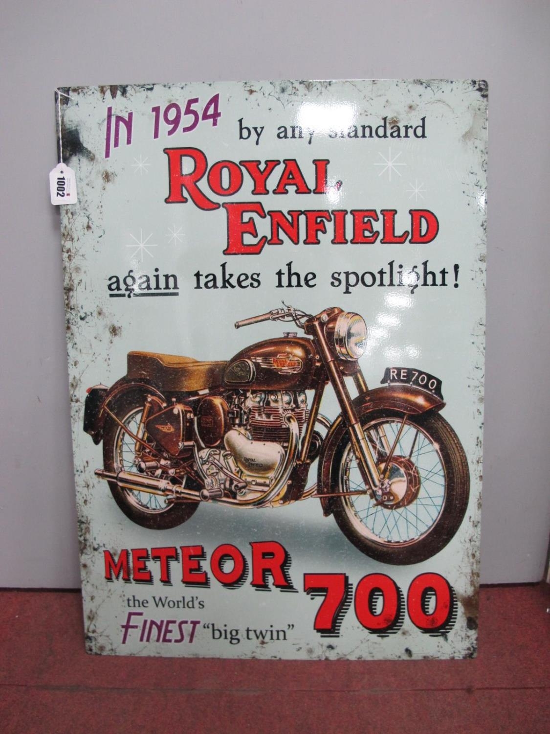 An Advertising Metal Wall Sign, Royal Enfield, Metcor 700 motorbike, 70 x 50cm.