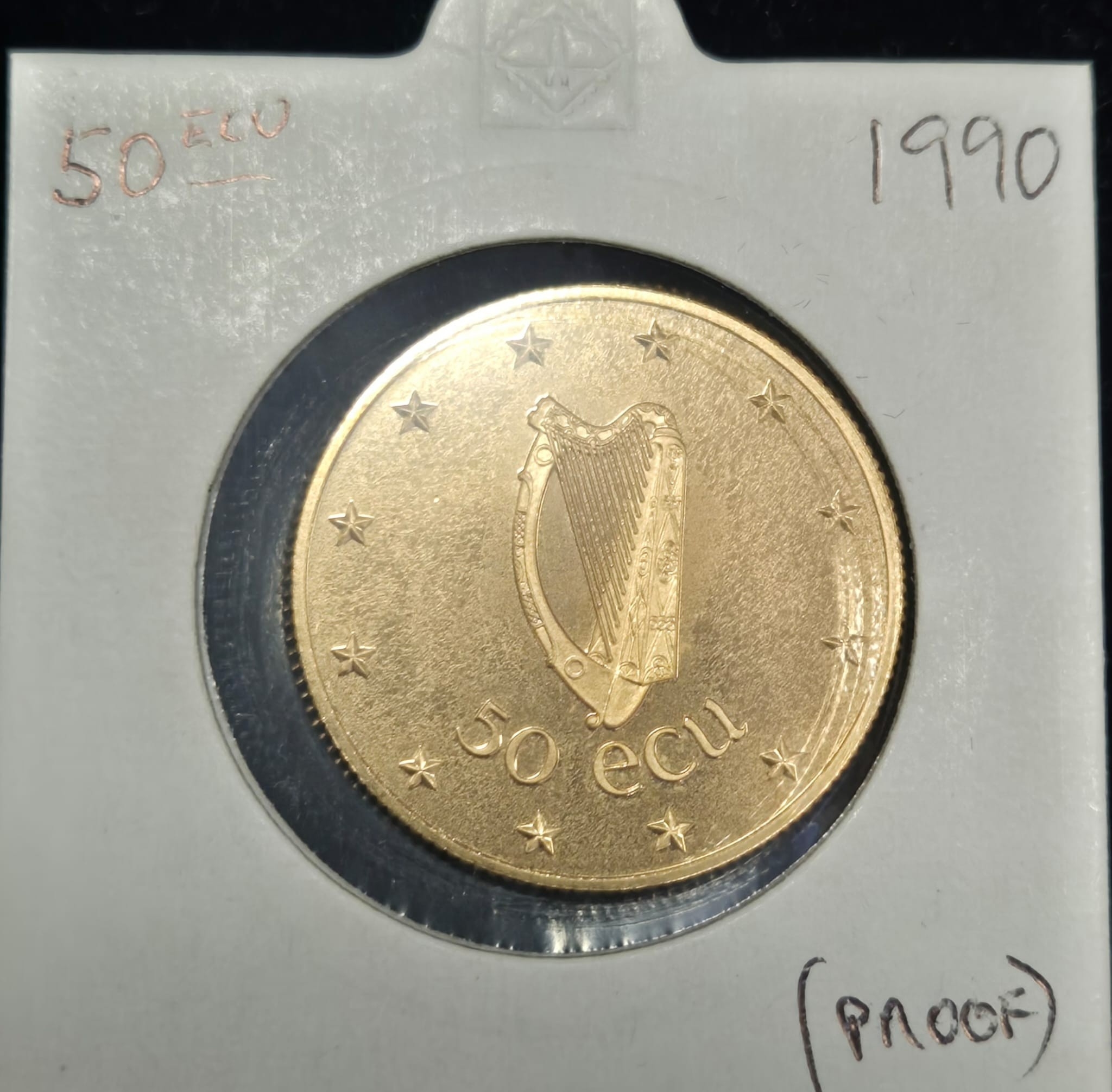 IRELAND: 1990 gold 50 ecu coin containing 13.75g of fine gol...