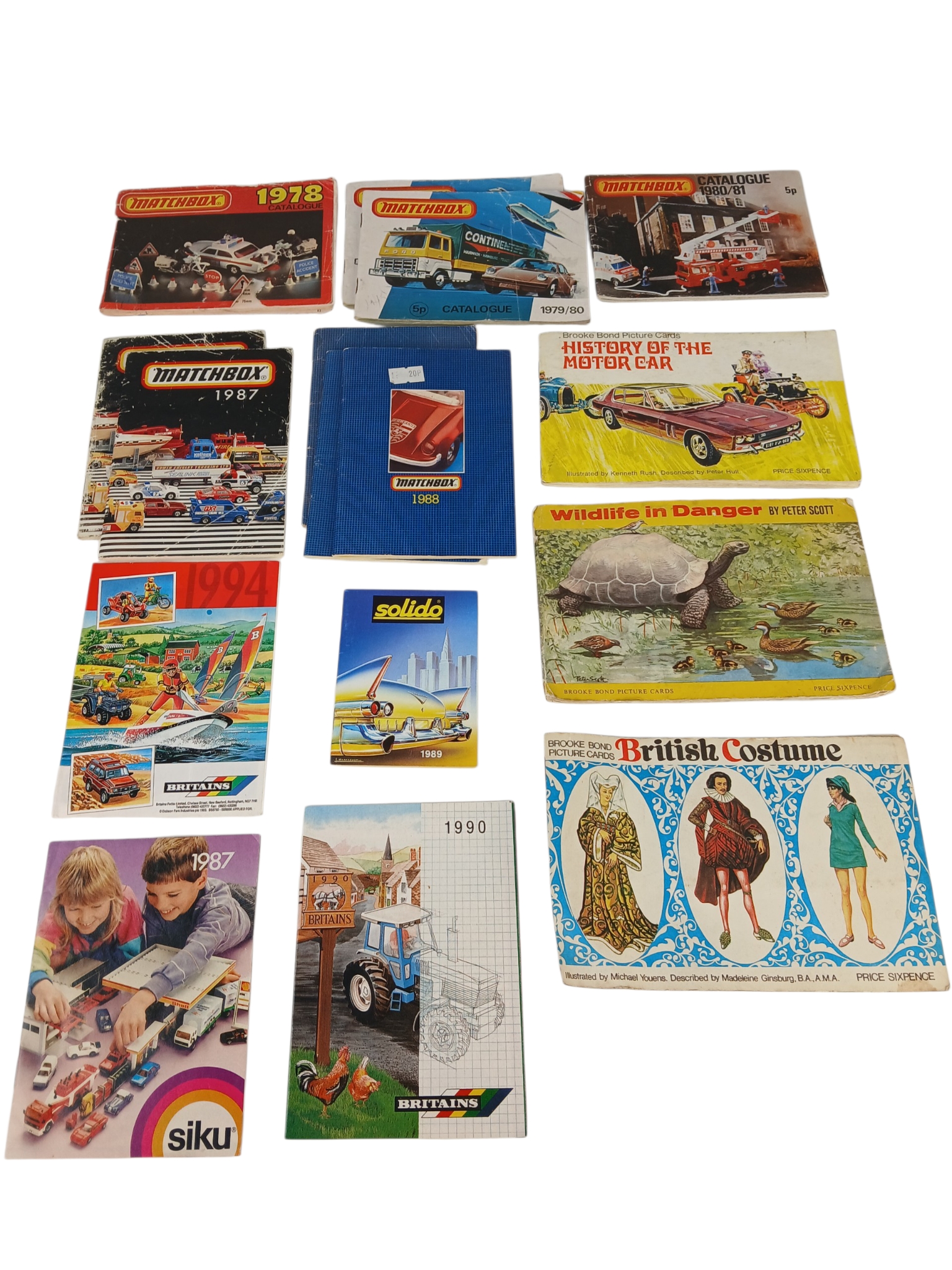 Quantity of Mostly 1970s and 1980s Diecast Catalogues including Matchbox with Group of Brooke Bond Picture Card Books – some duplicates