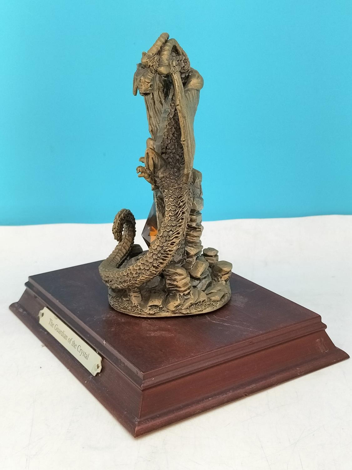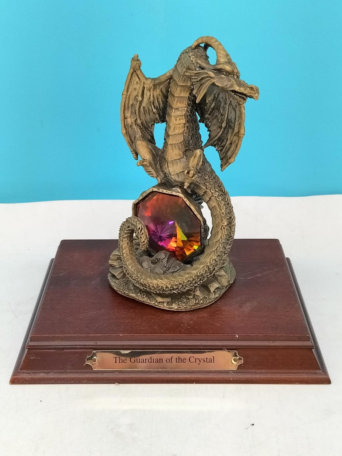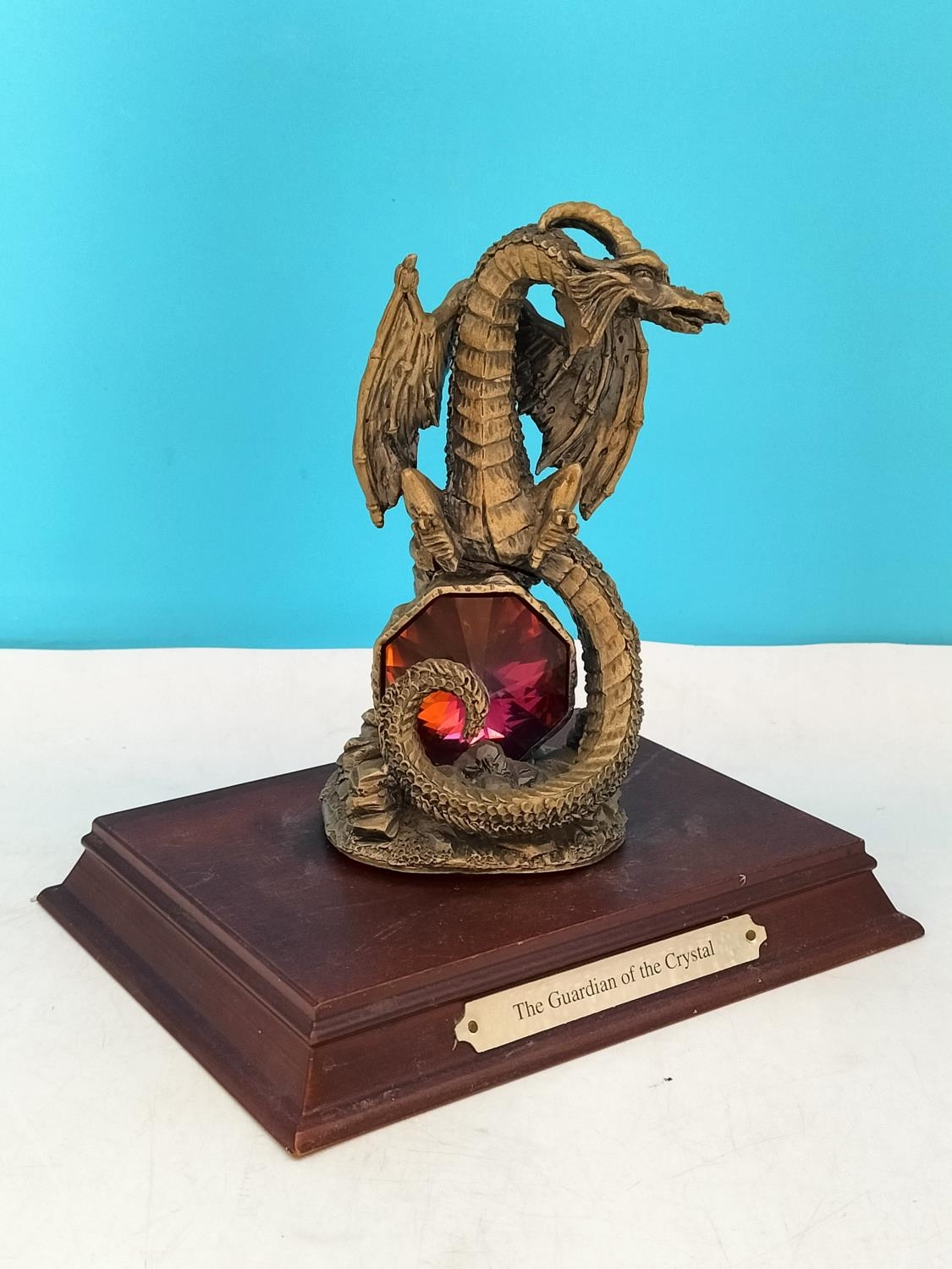 Tudor Mint Myth and Magic 1995 Dragon Figure 'The Guardian of the Crystal' on Plinth. 16cm High, 16cm x 12cm.