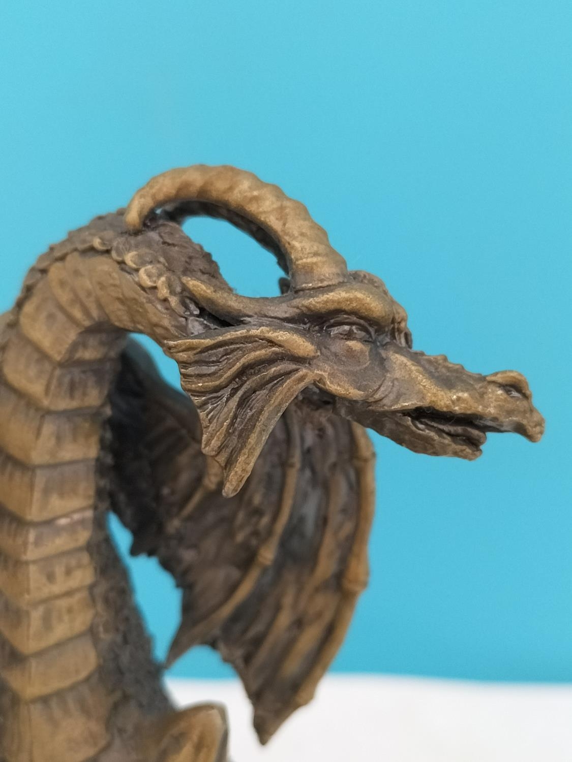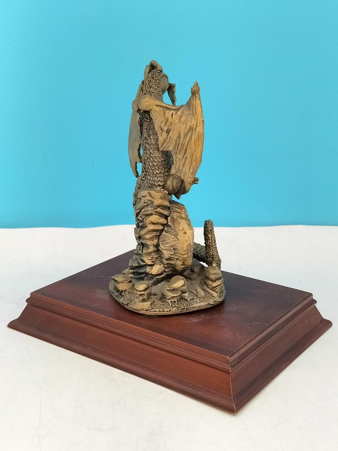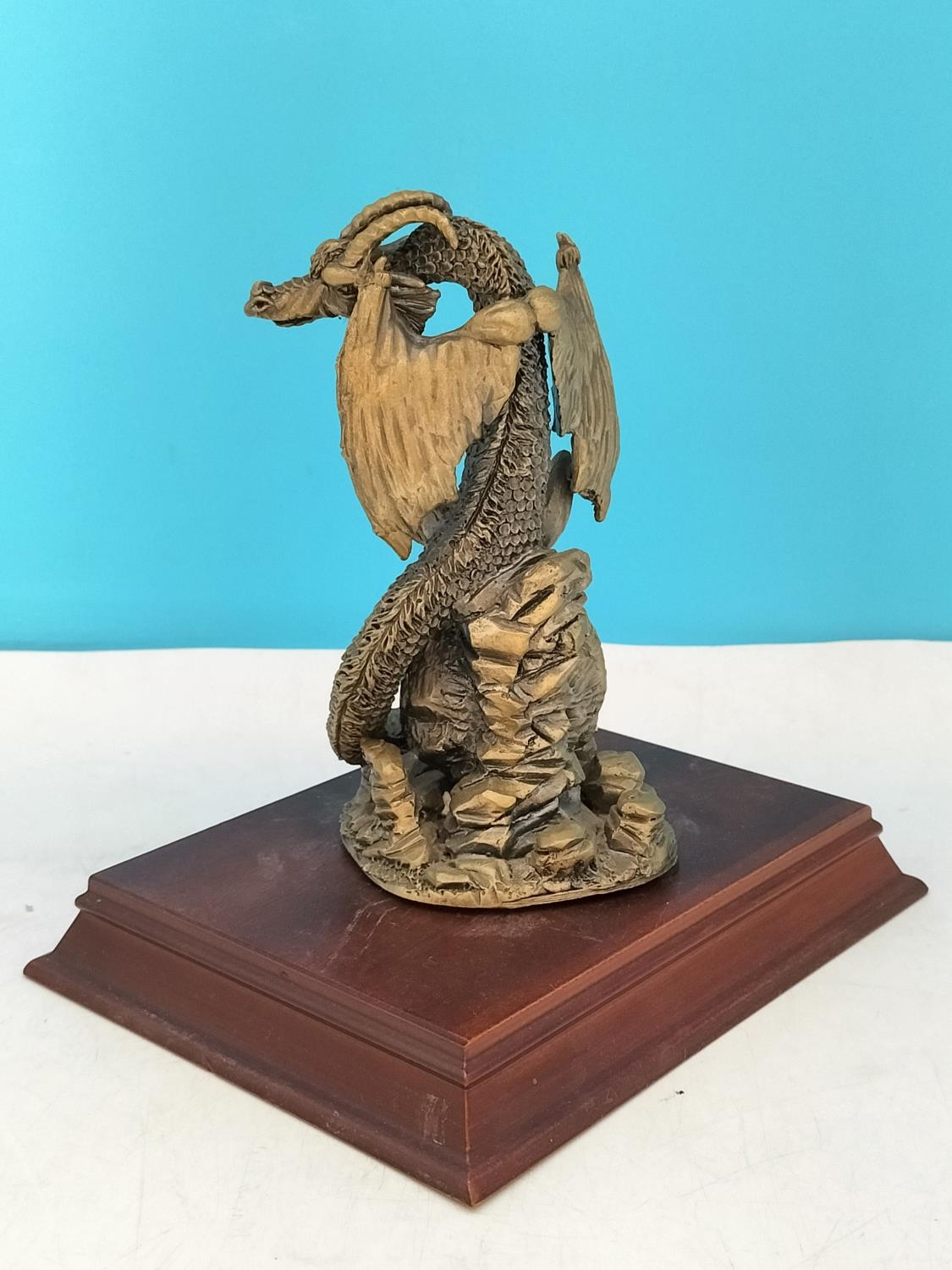Tudor Mint Myth and Magic 1995 Dragon Figure 'The Guardian of the Crystal' on Plinth. 16cm High, 16cm x 12cm.