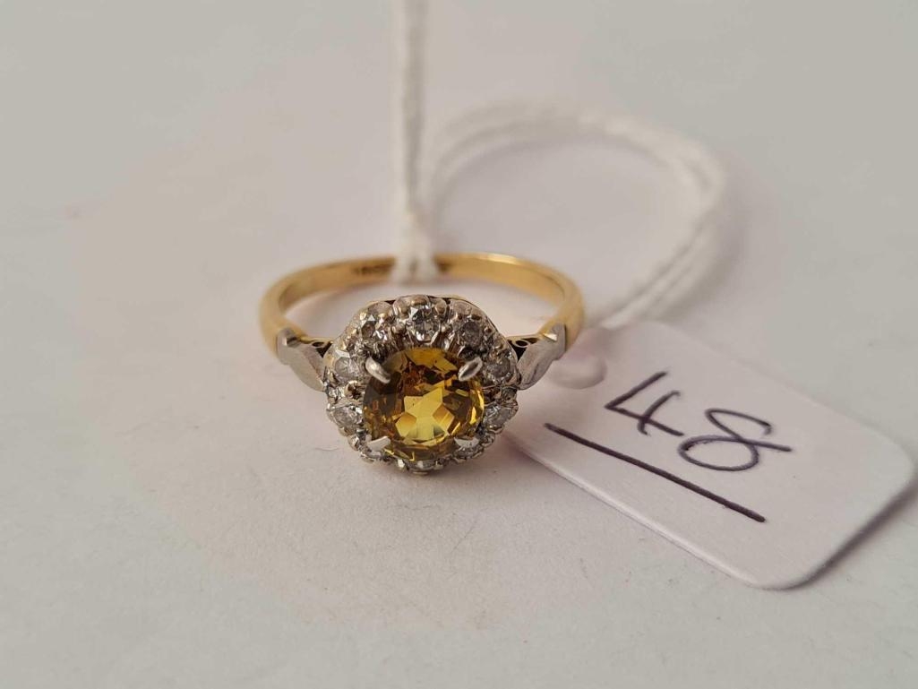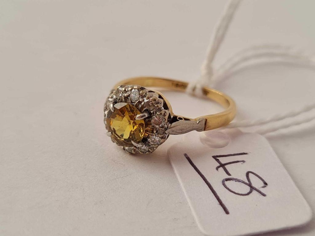 A EDWARDIAN YELLOW SAPPHIRE AND DIAMOND CLUSTER RING 18CT GOLD SIZE J1/2 - 2.8 GMS