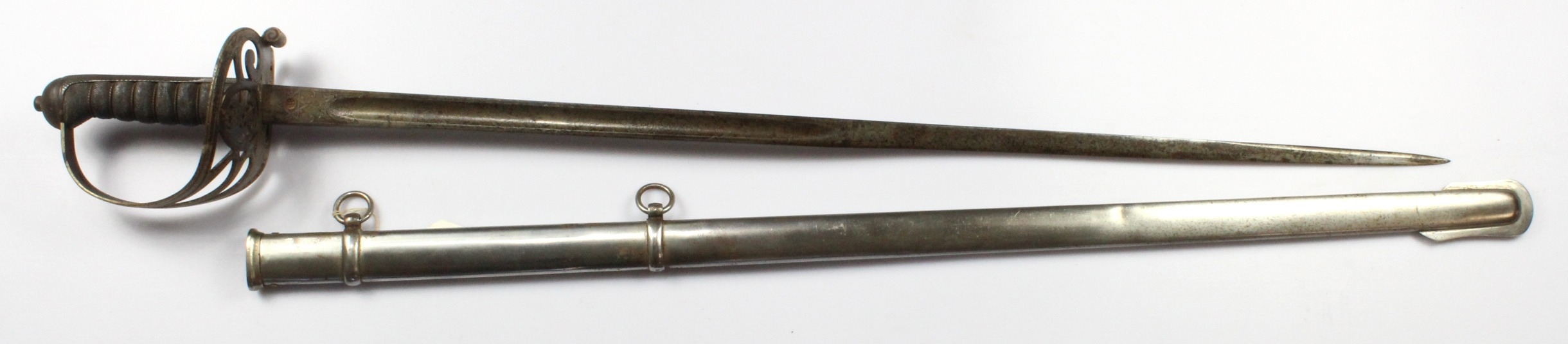 Sword ERVII 1827 pattern Rifle Brigade Officers in its steel scabbard.