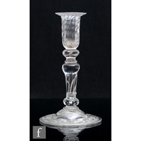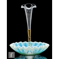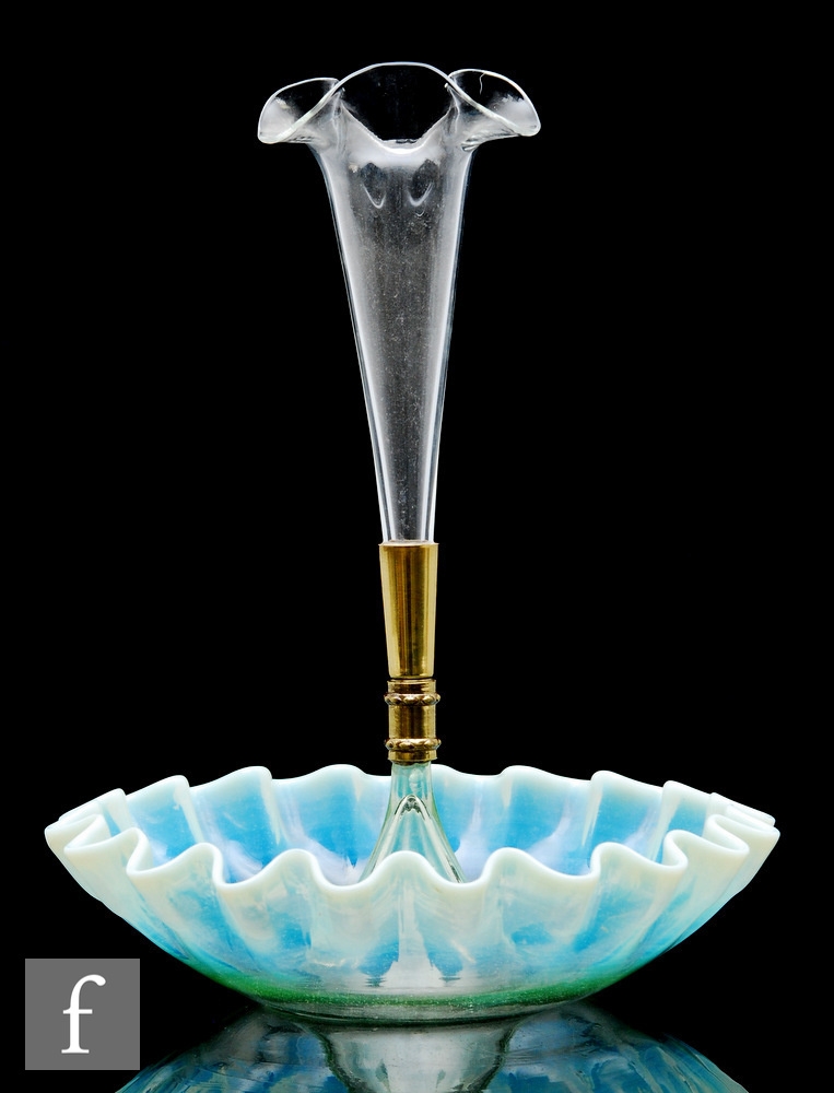 A late 19th Century Stourbridge table centre epergne, the wide frill rim bowl with a graduated opalescence, mounted to the centre with a clear crystal glass trumpet, height 24cm.