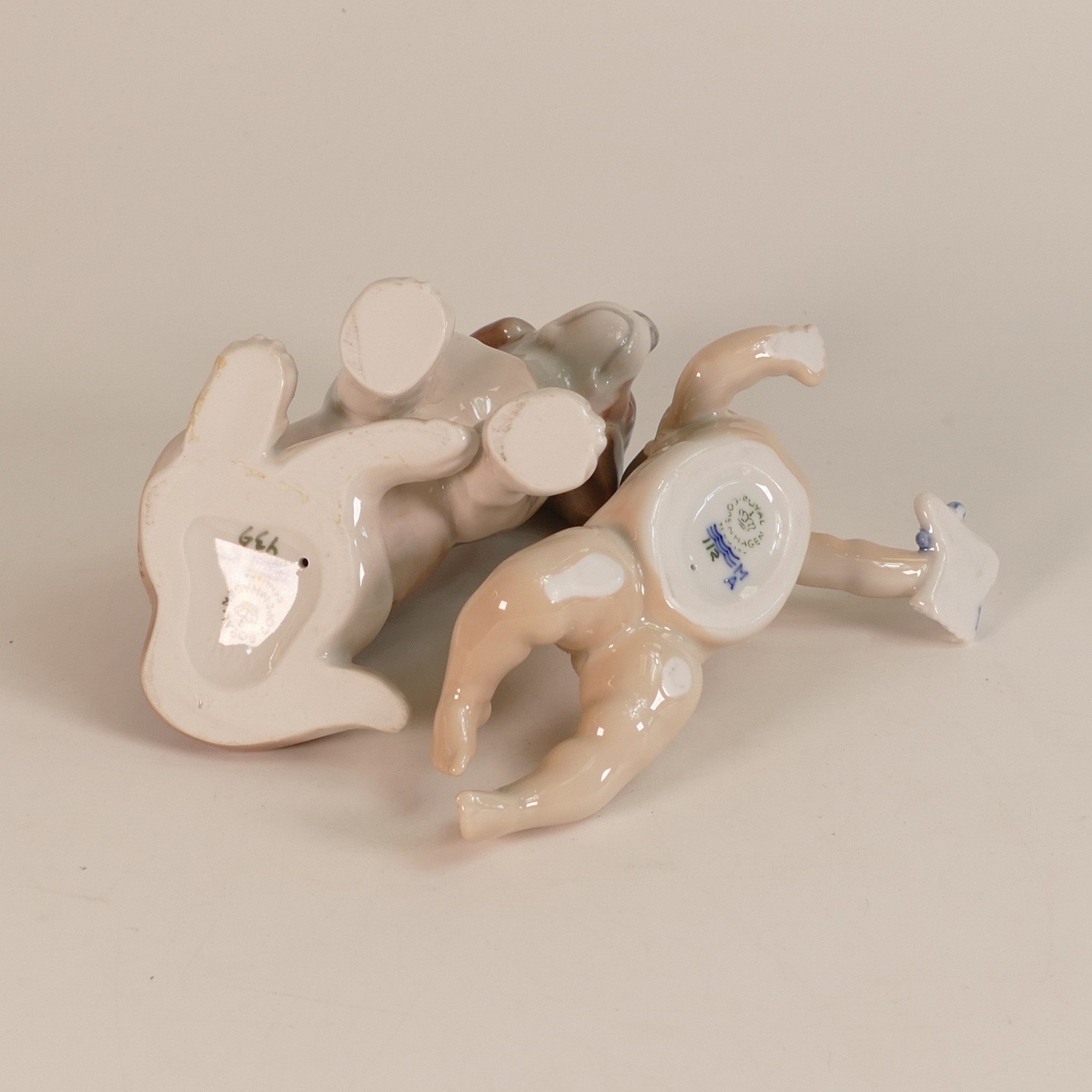 Royal Copenhagen porcelain models - one of a seated puppy, model 739 and one model of a crawling baby, model 112. (2)