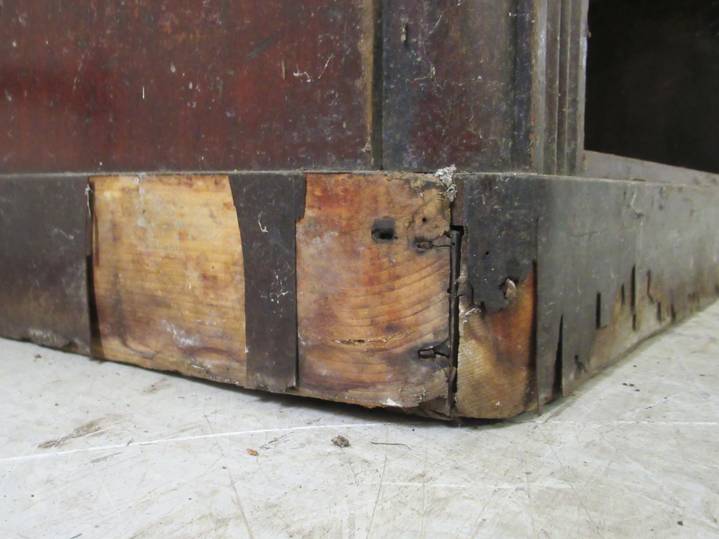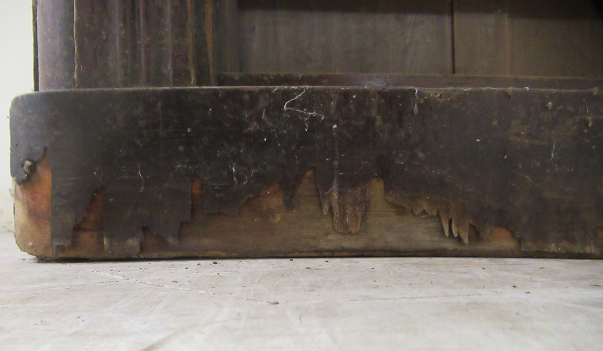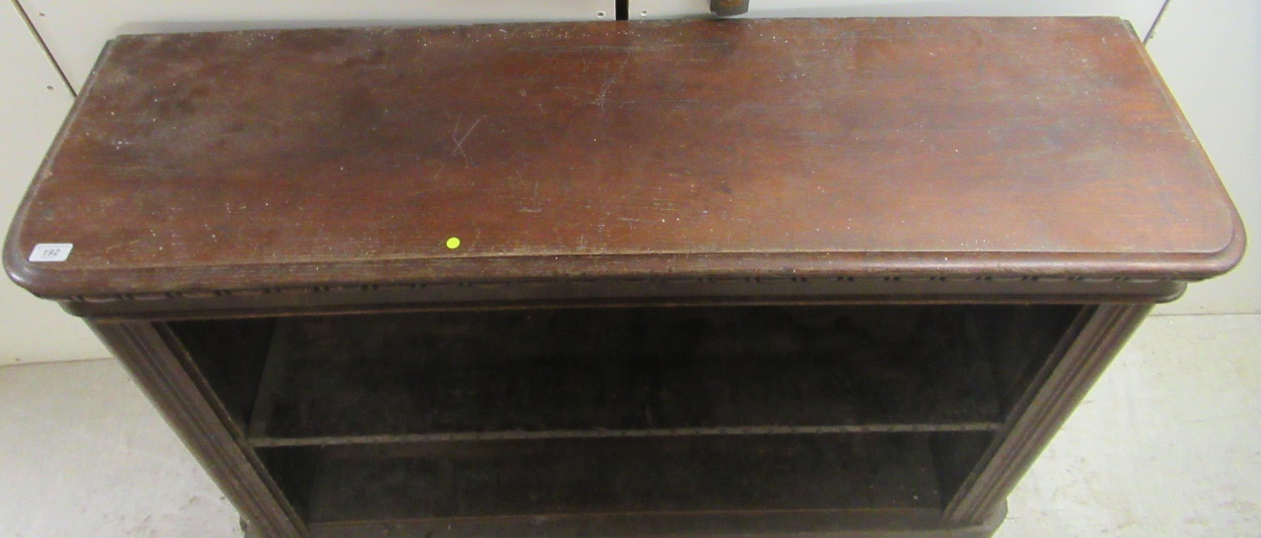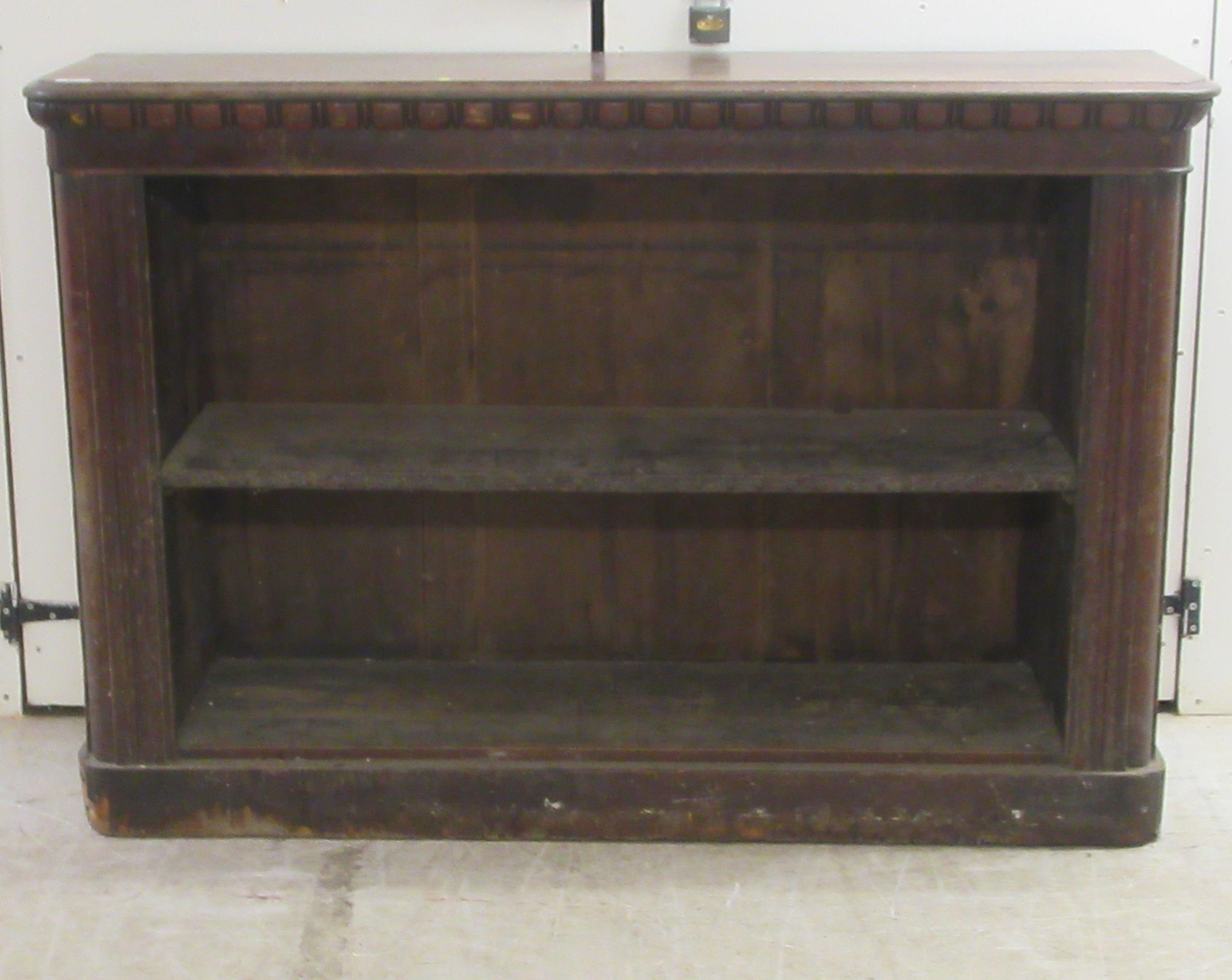 A mid 19thC stained oak, open front, two tier bookcase, on a plinth 35"h 53"w