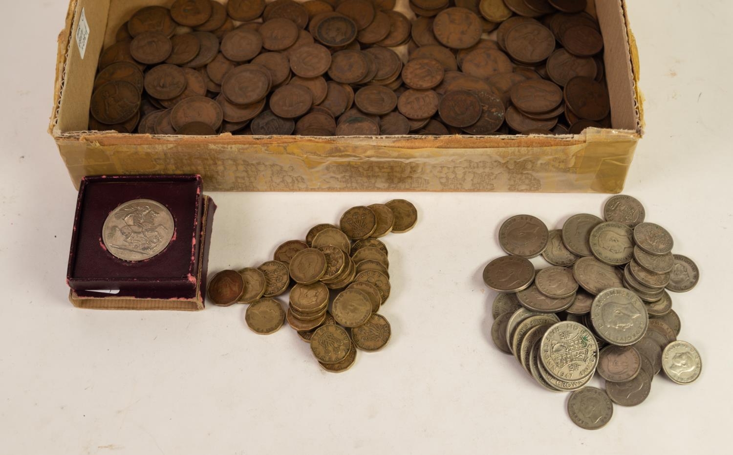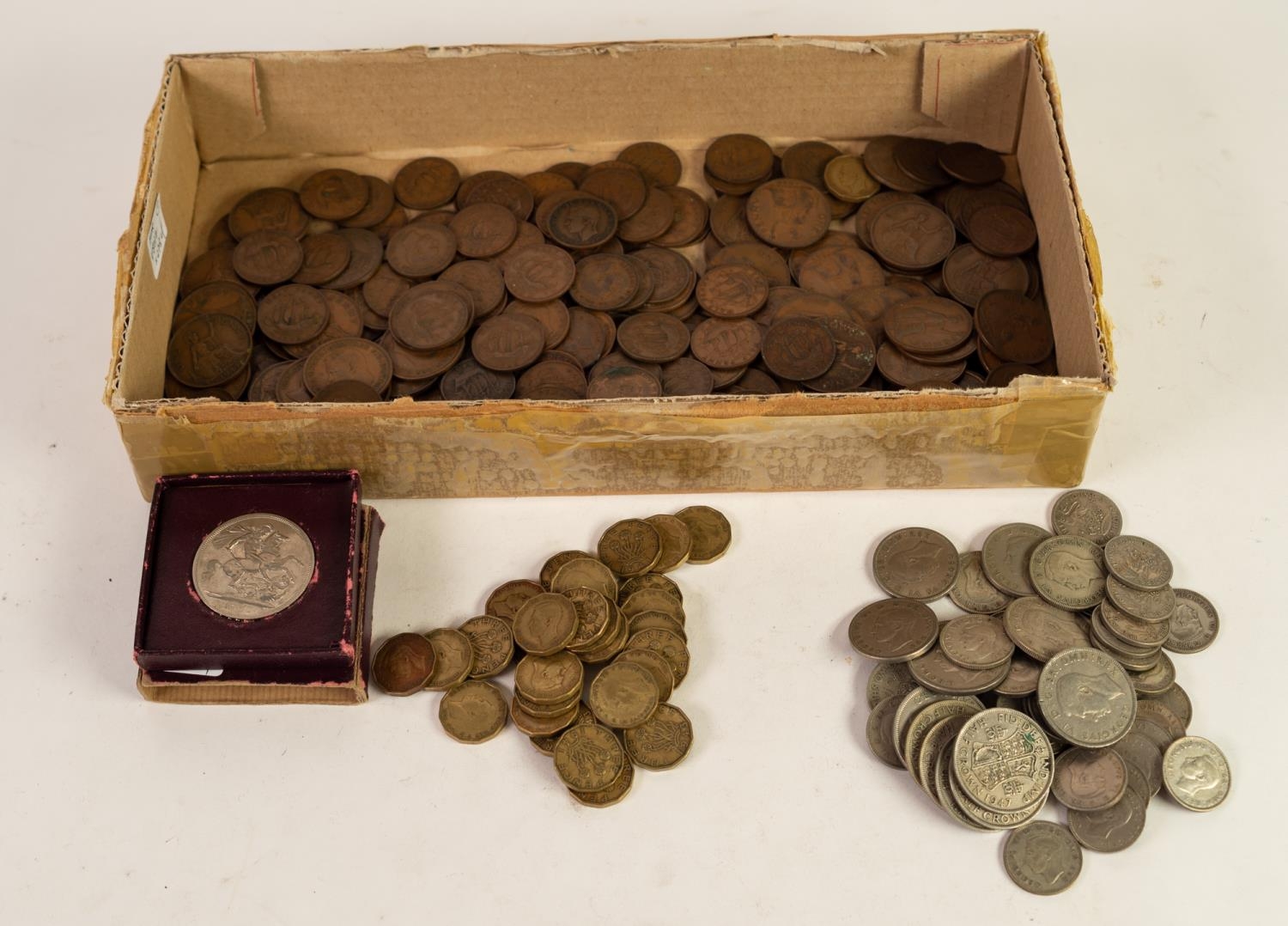 GEORGE VI FESTIVAL OF BRITAIN CROWN COIN 1951 (EF), in fitted maroon and gilt card box. TOGETHER WITH A SELECTION OF GEORGE VI SILVER COINAGE via half crowns x 9, two shillings x 6, shillings x 32, and a GOOD SELECTION OF GEORGE VI COPPER COINAGE approx 278 coins in total (278)