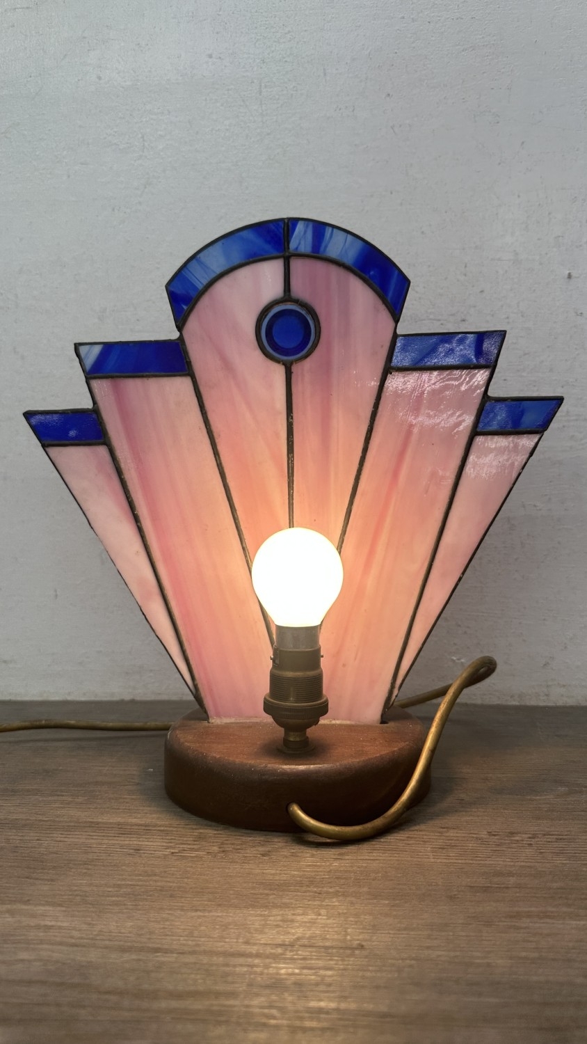 An Art Deco style Tiffany type stained glass table lamp with...