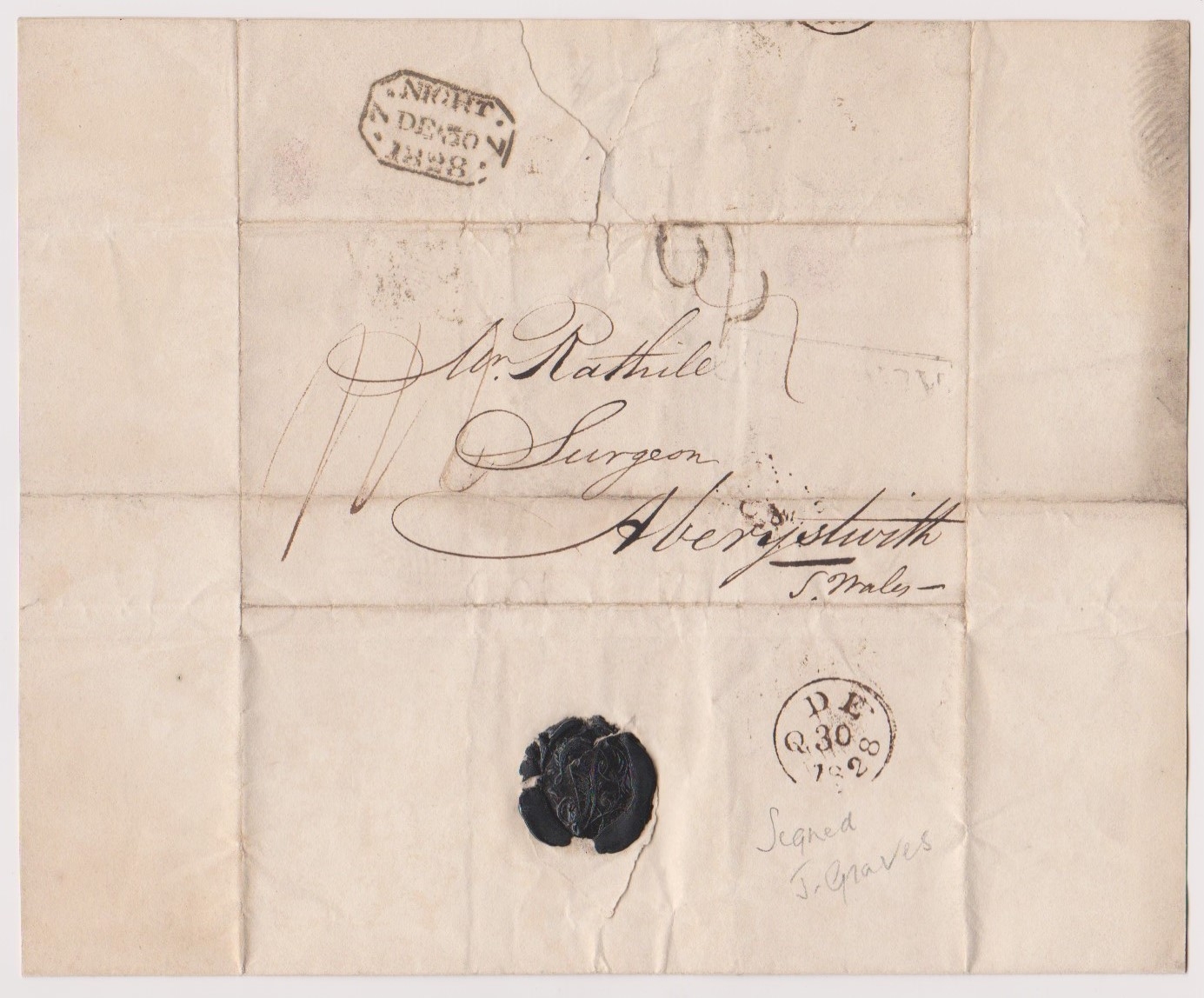 Great Britain 1828-EL dated 30th Dec 1828 Holloway posted to Aberystwyth-manuscript 2 and 1/1 indistinct black boxed Holloway black night/DE30/1828 cancel-black single ring DE/Q30/1828