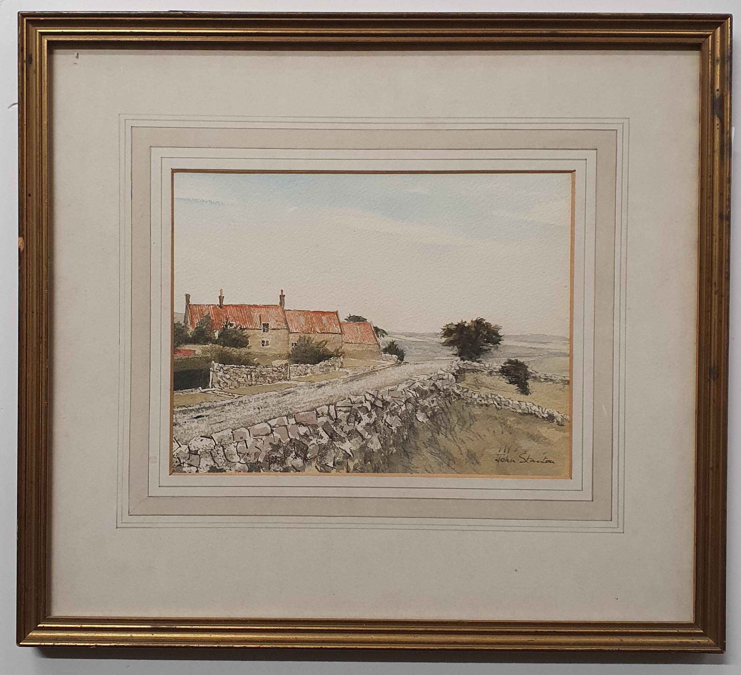A 20th Century Watercolour on a Farm with dry stone wall to the fore, signed John Staunton lower right. 18 x 24cm approx.