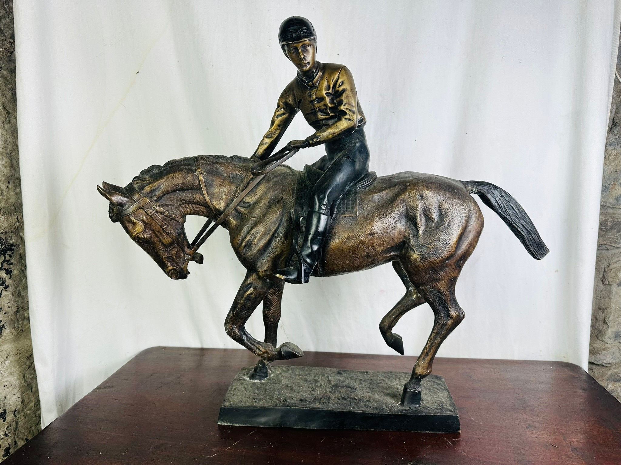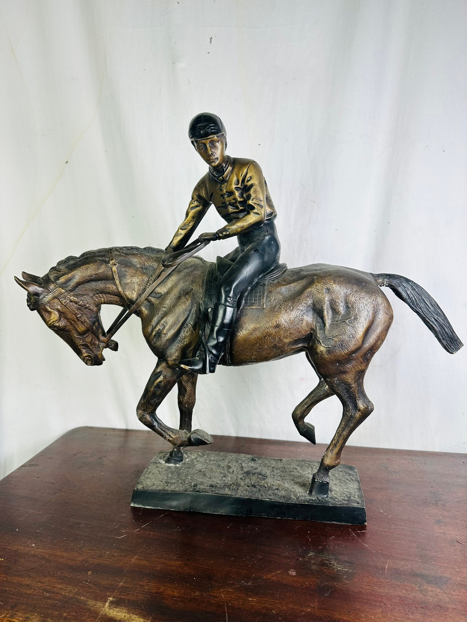 A large impressive sculpture of a horse and jockey, often referred to as '' le Grand Jockey'', 21''h x 24''l