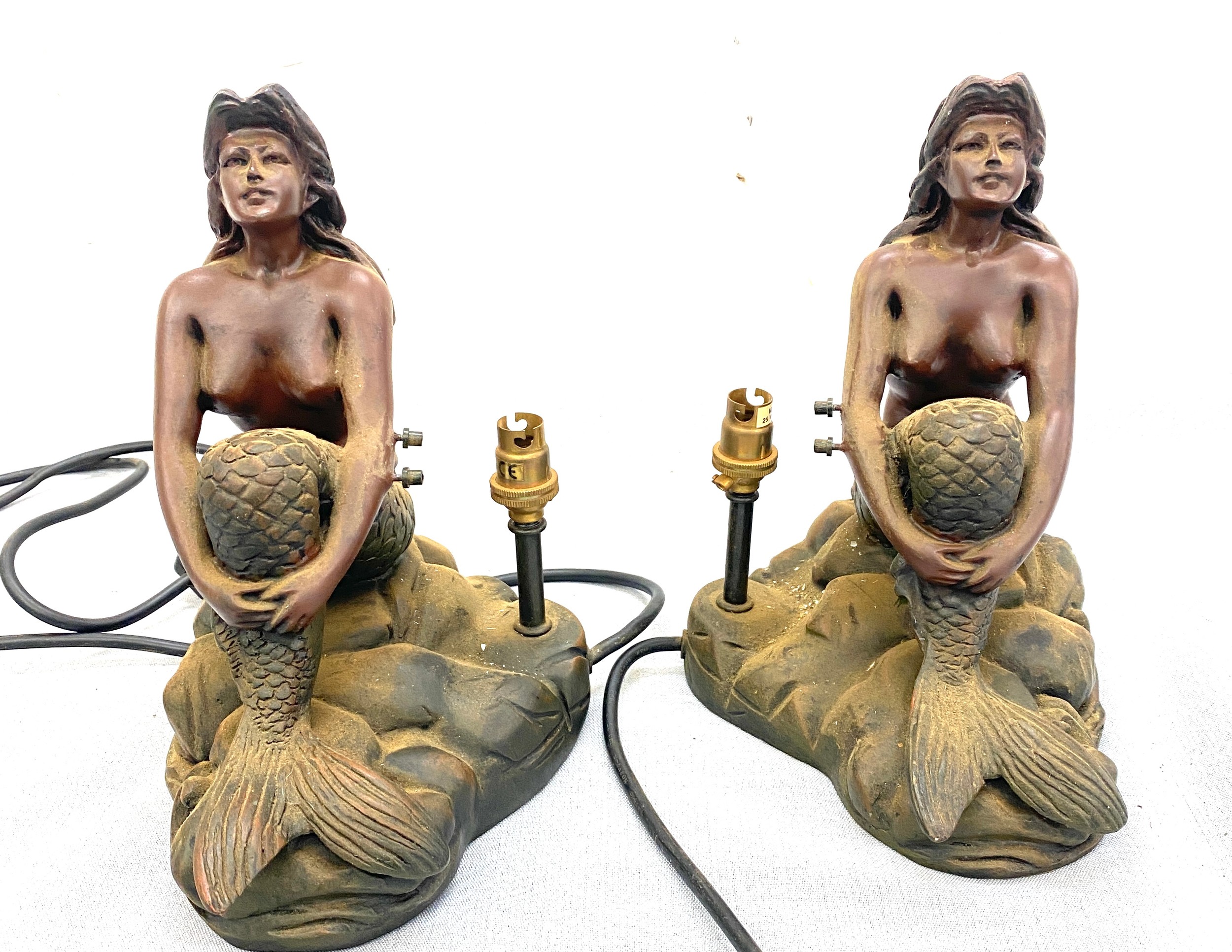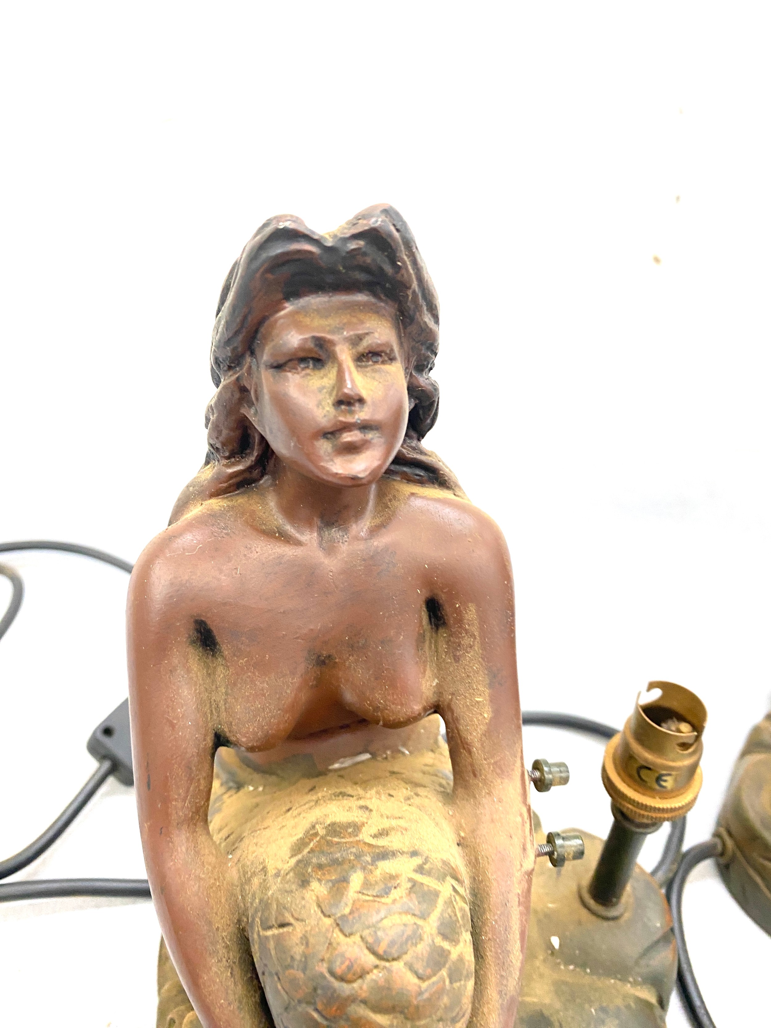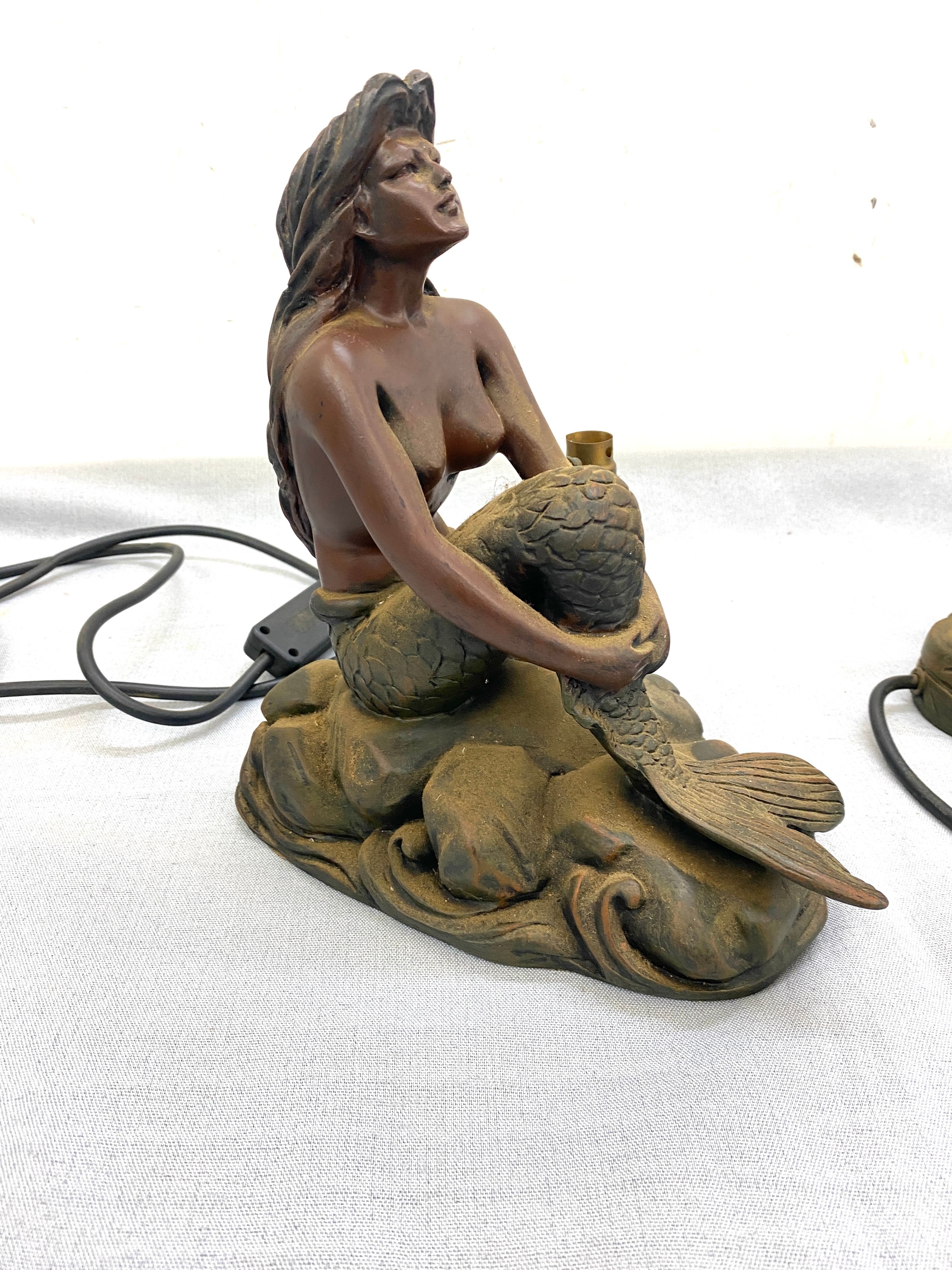 Pair mermaid resin table lamps, both untested