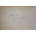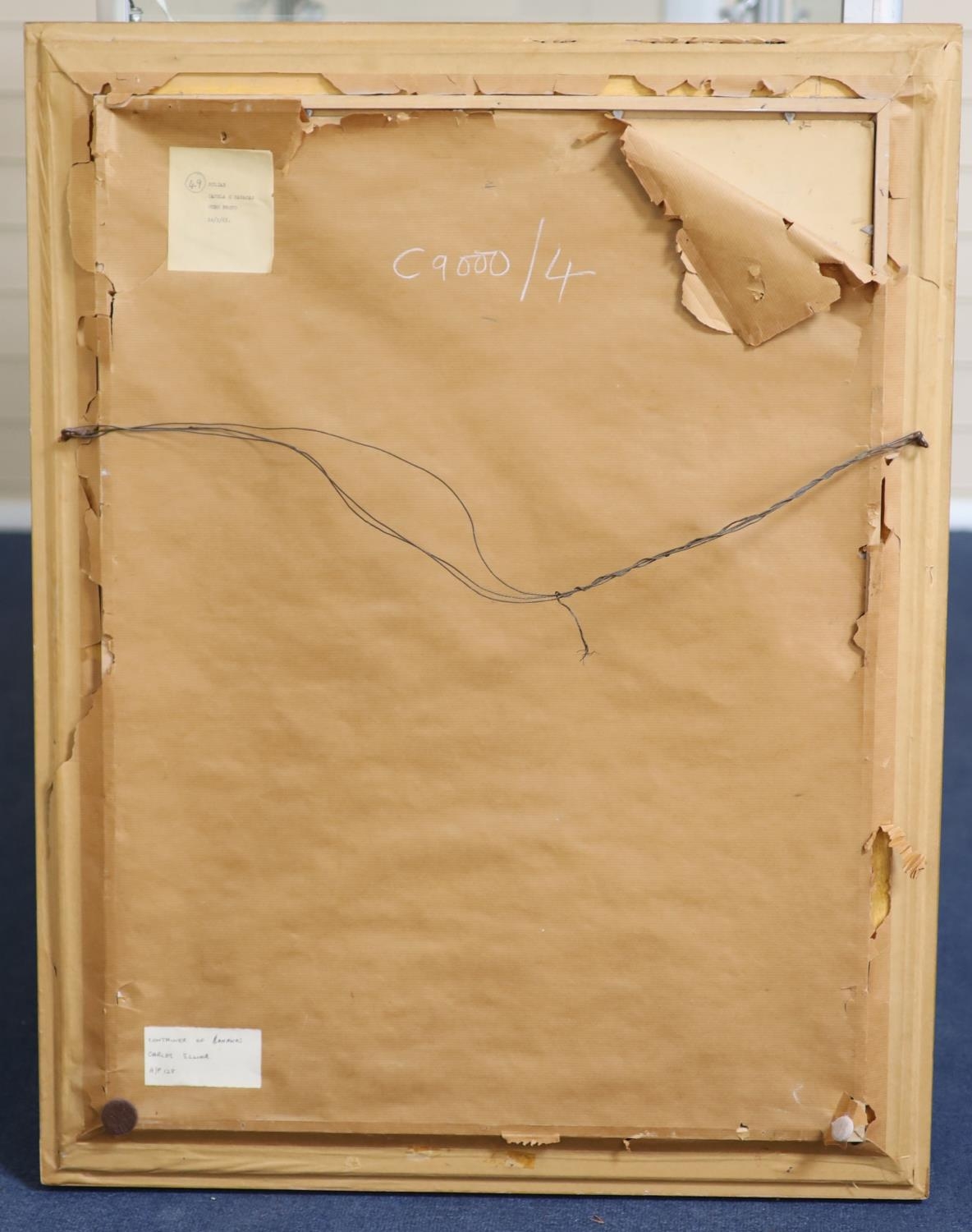 Oil on board in honest untouched condition with no faults noted other than being a little dirty, not signed, housed in what looks to be the original parcel gilt frame which is now a little tatty, original papering to the back has been torn down but still retains the original typed label along with a hand inscribed paper label, back of the board reveals the details inscribed in ballpoint pen.
