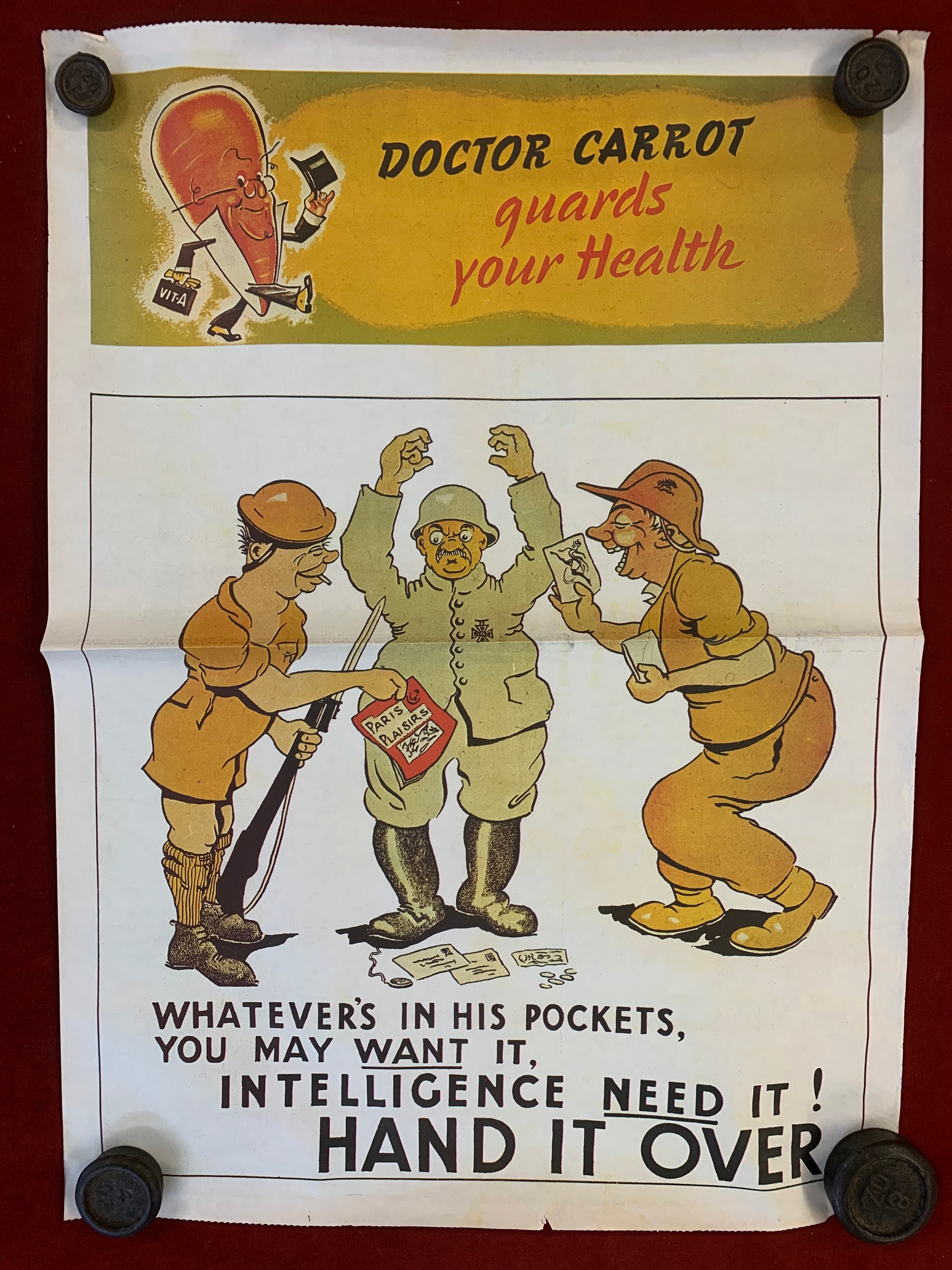 War Poster-'Doctor Carrot'-(Guards Your health) Intelligence Need it!-Hand it Over-measurement 58cm x 41cm fold in poster and slight tear at top of poster other wise very good condition