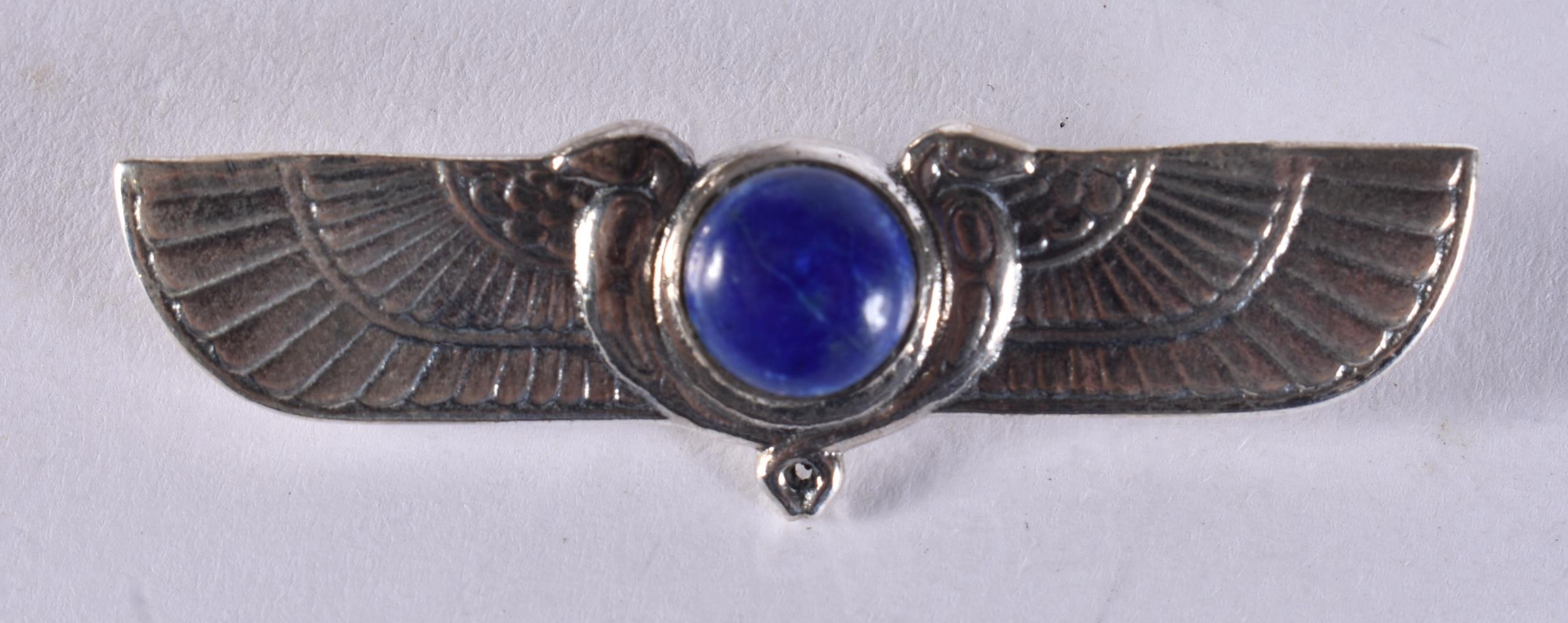 A SILVER AND LAPIS BROOCH. 8 grams. 5 cm wide.